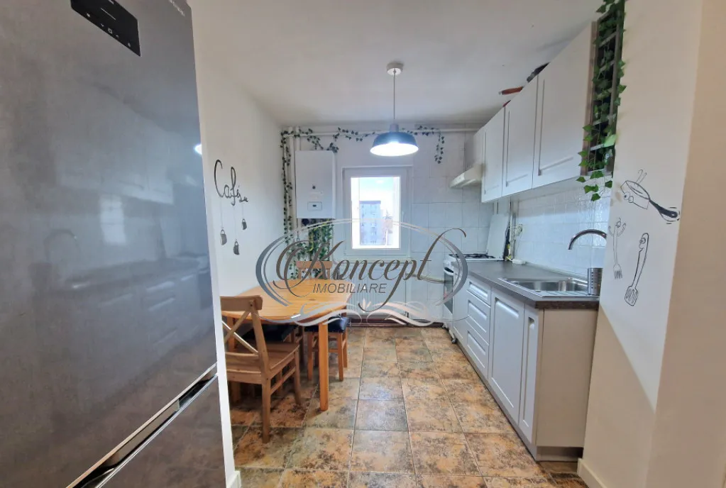 Koncept Imobiliare va ofera spre inchiriere un apartament situat in cartierul Gheorgheni, in zona Interservisan, una dintre cele mai cautate si echilibrate zone rezidentiale din Cluj-Napoca, apreciata pentru accesibilitate si spatii verzi. Proprietatea este amplasata la etajul 2 al unui imobil reabilitat termic cu 4 etaje, intr-o zona linistita, retrasa de la zgomotul traficului, dar in imediata apropiere a statiei de autobuz, magazinelor, farmaciilor si restaurantelor, cu acces facil atat spre centrul orasului, cat si spre Iulius Mall. Apartamentul are o suprafata utila de 50 mp, la care se adauga 5 mp de balcoane, fiind compartimentat eficient in dormitor, living, bucatarie separata, baie cu geam si cada, precum si hol de intrare prevazut cu spatii de depozitare. Dispune de doua balcoane inchise cu termopan, unul cu acces din dormitor si unul din living, oferind un plus de confort si functionalitate. Locuinta se inchiriaza complet mobilata si utilata, fiind pregatita pentru mutare imediata. Este dotat cu frigider, aragaz cu cuptor, hota si cuptor cu microunde si masina de spalat rufe. Incalzirea se realizeaza prin centrala termica proprie cu calorifere, asigurand control asupra consumului si costuri optimizate in sezonul rece. Orientarea sud-estica ofera lumina naturala generoasa pe parcursul zilei, contribuind la o atmosfera placuta si primitoare. Printre punctele forte ale acestui apartament se remarca zona verde si aerisita, compartimentarea practica cu camere separate, prezenta celor doua balcoane inchise, centrala termica proprie si accesul rapid catre principalele puncte de interes ale orasului. Posibilitatea de parcare in zona reprezinta un avantaj suplimentar pentru viitorii chiriasi. Proprietatea este ideala pentru un cuplu care isi doreste un apartament confortabil, intr-o zona bine cotata din Gheorgheni, cu acces rapid catre oras si facilitati urbane, dar cu avantajul unei ambiante linistite si verzi. Se accepta un caine de talie mica, ceea ce adauga flexibilitate pentru chiriasii iubitori de animale. Pentru informatii suplimentare, programarea unei vizionari sau pentru a afla oferta noastra completa va stam la dispozitie telefonic, prin e-mail sau la sediul agentiei noastre, pe str. Aviator Badescu, nr. 19, Cluj-Napoca.
