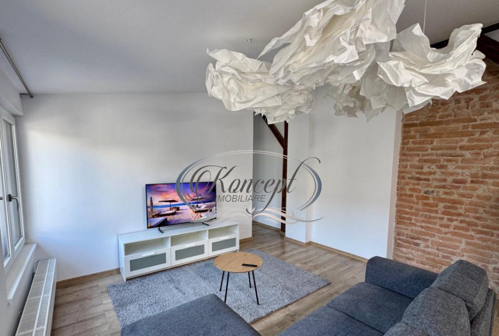 Koncept Imobiliare va ofera spre inchiriere un apartament cu 3 camere in Centrul Clujului in imediata apropiere a Facultatii de Drept Apartamentul este situat la mansarda unui imobil de tip vila are suprafata utila de 57 mp si este compartimentat dupa cum urmeaza 2 dormitoare living open-space cu bucataria terasa de 40 mp baie si hol Acesta dispune de finisaje moderne este la prima inchiriere si se inchiriaza complet mobilat si utilat La pretul afisat se adauga o taxa fixa de 150 Euro/ luna pentru toate cheltuielile gaz curent apa si internet Datorita zonei si a compartimentarii apartamentul se preteaza pentru un cuplu sau 2 persoane Ocupabil imediat Pentru informatii suplimentare programarea unei vizionari sau pentru a va prezenta oferta noastra completa nu ezitati sa ne contactati telefonic prin e-mail sau la sediul agentiei noastre de pe str Aviator Badescu nr 19 Cluj-Napoca Id intern P20727