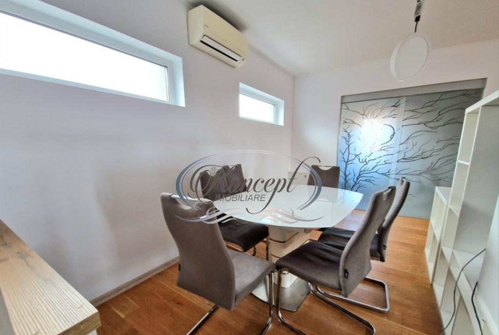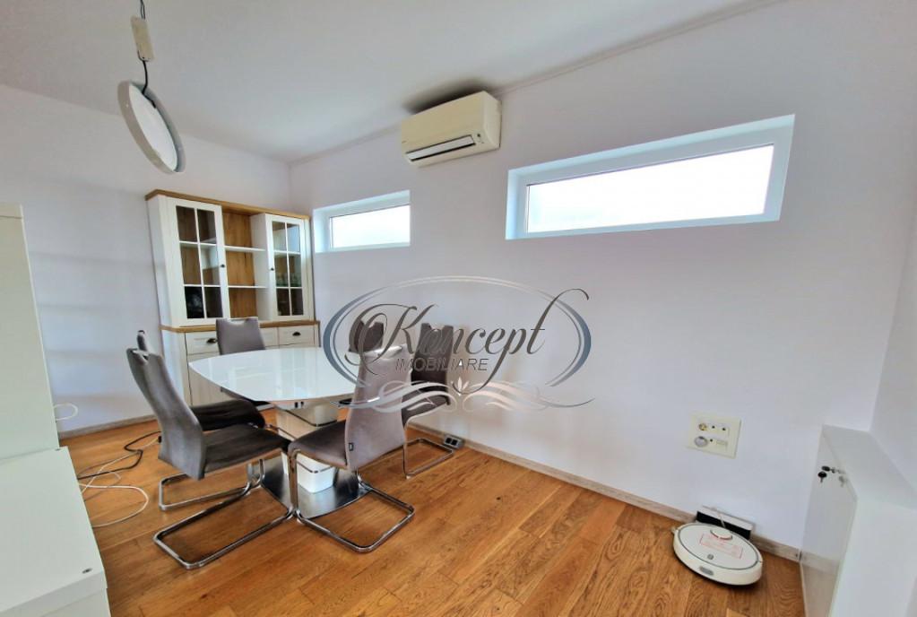 Koncept Imobiliare va ofera spre inchiriere un apartament la casa situat in cartierul Someseni zona IRA amplasat la etajul 1 al unei case bine intretinute cu acces rapid catre zona IRA Leroy Merlin Lidl si Kaufland Selgros precum si catre principalele rute spre centrul orasului la aproximativ 25 de minute cu masina sau transportul in comun Locatia ofera un cadru linistit cu expunere est-sud-vest si acces facil la utilitatile urbane fiind potrivita pentru cei care cauta confort si proximitate fata de puncte de interes Apartamentul dispune de o suprafata generoasa de aproximativ 100 mp fiind compartimentat optim in doua dormitoare luminoase un living cu zona de dining o bucatarie inchisa complet utilata o baie spatioasa spatii de depozitare si o terasa de 12 mp orientata spre curtea interioara Proprietatea beneficiaza de acces la curtea comuna oferind un plus de spatiu exterior si o atmosfera placuta pentru relaxare Imobilul este izolat termic la exterior si echipat cu centrala proprie si incalzire prin calorifere asigurand eficienta si confort pe tot parcursul anului Dispune de un loc de parcare in curtea imobilului inclus in pret Finisajele moderne mobilierul nou si bine intretinut precum si dotarile complete ale bucatariei - plita cuptor frigider hota si masina de spalat vase - contureaza o locuinta functionala si gata de mutare Compartimentarea practica luminozitatea naturala datorata orientarii multiple terasa cu vedere spre curtea interioara si linistea specifica zonei de case reprezinta avantajele esentiale care diferentiaza aceasta oferta Accesul printr-un hol tip casa scarii asigura un grad placut de intimitate iar curtea generoasa amplifica senzatia de spatiu si confort Sunt permise animalele de companie de talie mica ceea ce face proprietatea potrivita si pentru chiriasi care isi doresc flexibilitate si libertate in acest sens Apartamentul se preteaza excelent pentru un cuplu o familie personal din zona Someseni sau aeroport precum si pentru expati care isi doresc un mediu linistit bine conectat cu un stil de viata echilibrat intre confort si accesibilitate urbana Pentru informatii suplimentare programarea unei vizionari sau pentru a afla oferta noastra completa va stam la dispozitie telefonic prin e-mail sau la sediul agentiei noastre pe str Aviator Badescu nr 19 Cluj-Napoca Id intern P21013