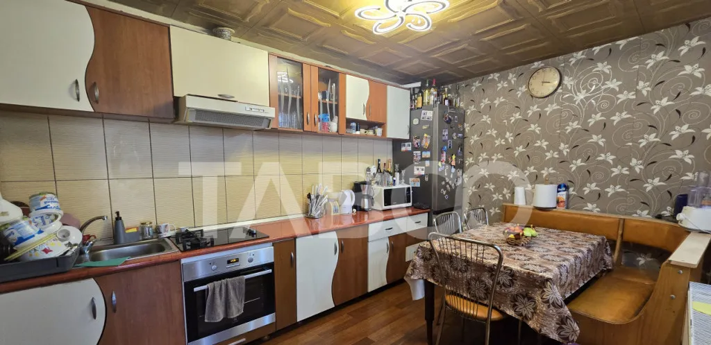 TABOO Imobiliare va propune spre vanzare un apartament de vanzare situat la casa in zona Orasul de Jos, apartamentul dispune si de curte individuala (comuna din punct de vedere juridic). Proprietatea este compusa practic dintr-un apartament si o garsoniera, insumand 4 camere, doua bucatarii si trei bai.