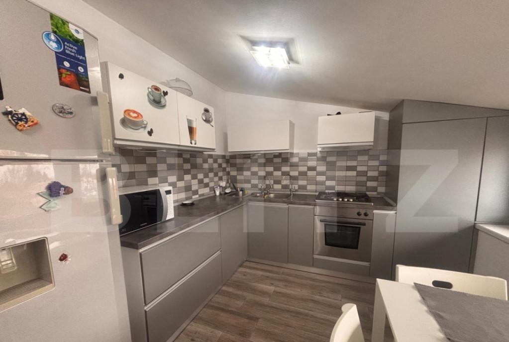 Blitz propune spre vanzare un apartament cochet ultracentral in Predeal cu vedere directa spre padure si toate facilitatile la cativa pasi - Partie - Centru - Restaurante - Gara - Supermarket - Farmacie Locuinta are 32 mp renovati este decomandata iar bucataria a fost extinsa cu aproximativ 13 mp Se vinde mobilata si utilata complet TV frigider masina de spalat electrocasnice covoare etc - totul nou Vantaje Centrala proprie Parcare in fata blocului 2 camere bucatarie baie hol Eliberare rapida in 3-4 zile de la semnare Bonus major Ai drept de extindere in pod pe toata suprafata apartamentului ceea ce iti permite sa amenajezi un al doilea apartament sau mai multe camere suplimentare Cod oferta / ID BLITZ P158494 Id intern P158494