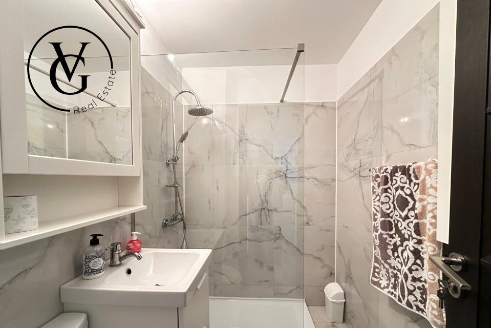 VG Real Estate va propune spre vanzare un apartament situat in zona Barbu Vacarescu ideal pentru investitie Informatii generale o Tipul apartamentului 2 camere tip open-space o Suprafata o Utila 121 4 m2 o Construita 136 m2 o Etajul 4 o Anul constructiei 2020 o Tipul cladirii bloc nou Detalii specifice o Compartimentare 1 bucatarie 1 living 1 dormitor 1 baie 1 hol 1 terasa o Dotari si finisaje centrala proprie Buderus aer conditionat Daikin in ambele camere incalzire in pardoseala usi cu inchidere magnetica baia este placata cu gresie si faianta portelanata rectificata iar obiectele sanitare sunt marca Villeroy Boch Terasa are trei straturi de hidroizolatie ultimul strat fiind din PVC lipit termic Este placata cu gresie flotanta de 2 cm grosime montata pe ploturi si este in curs de reamenajare cu pergole bioclimatice mobilier de exterior si lumini ambientale Apartamentul nu a fost locuit niciodata in prezent ...