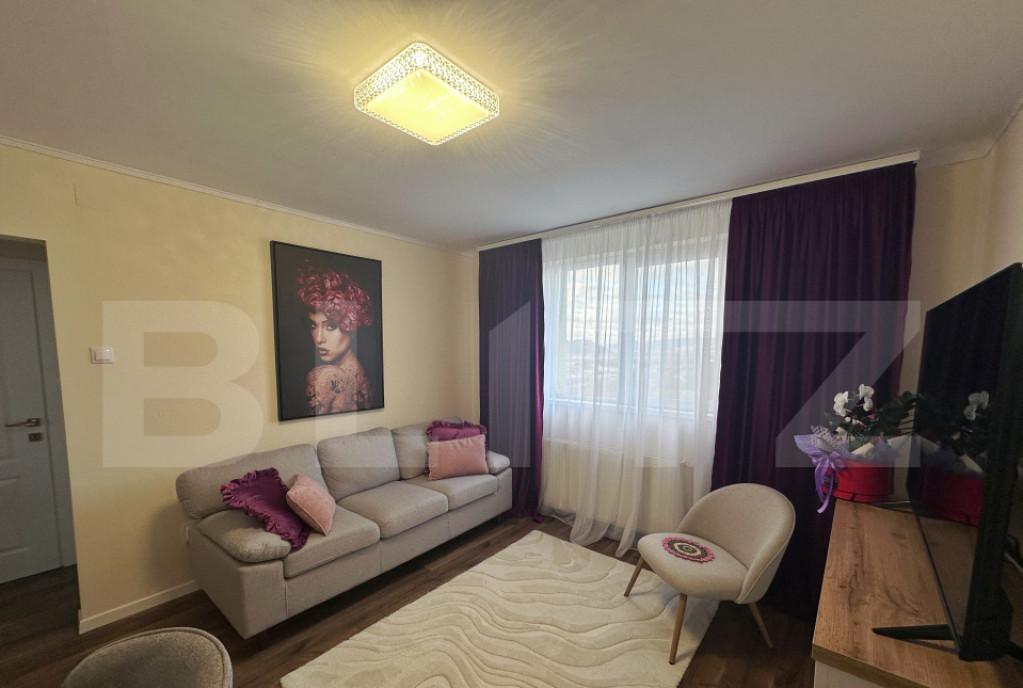Blitz va prezinta un apartament de 3 camere amenajat cu bun gust gandit pentru confort lumina si o priveliste care completeaza perfect spatiul o Suprafata utila 43 mp o Compartimentare living luminos dormitor dressing amenajabil ca birou sau camera de copil bucatarie baie si hol o Etaj 4/4 o Bloc izolat termic exterior o Instalatie electrica noua o Mobilier si electrocasnice noi cu garantie o Finisaje moderne culori calde spatiu optimizat renovat integral o Vedere panoramica o Disponibil imediat Un apartament pregatit pentru confortul tau zilnic - curat elegant si gata de locuit din prima zi Programeaza o vizionare si descopera cum poate arata noul tau inceput in propriul camin Cod oferta / ID BLITZ P157108 Id intern P157108