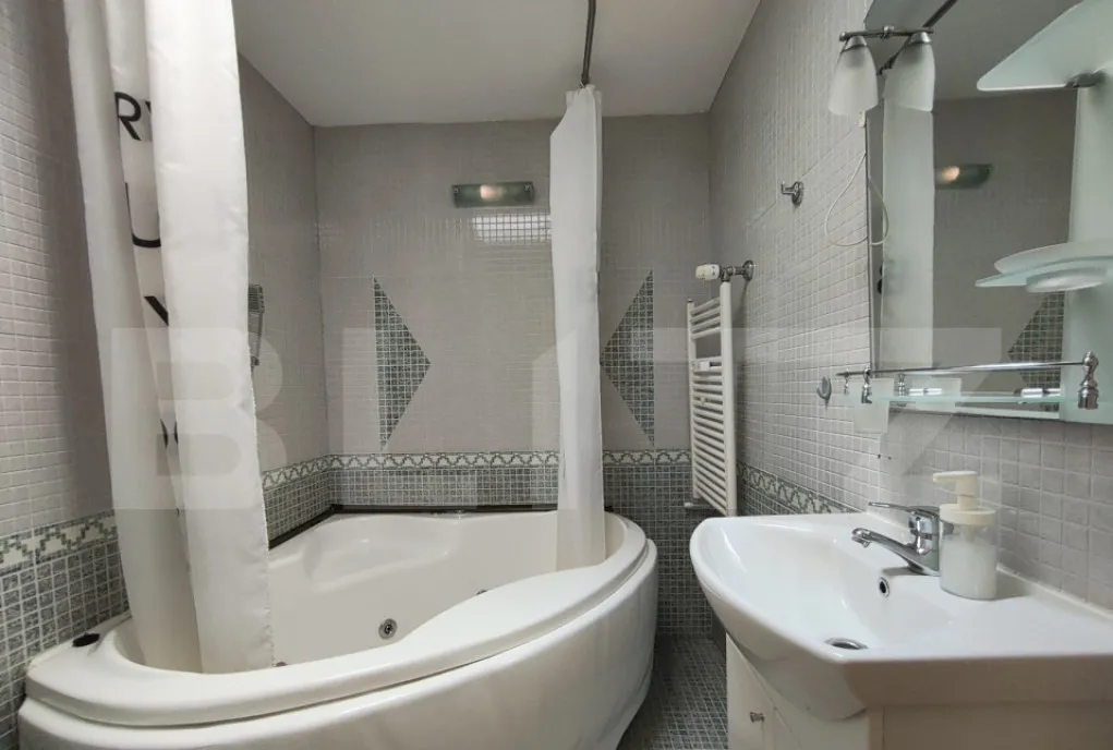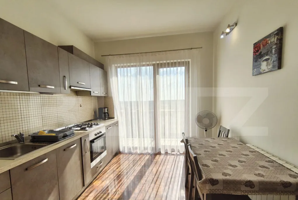 -Parter: bucatarie individuala complet utilata (combina frigorifica, cuptor incorporat, plita, hota, cuptor cu microunde, cafetiera, sandwich maker) cu iesire in balcon;
