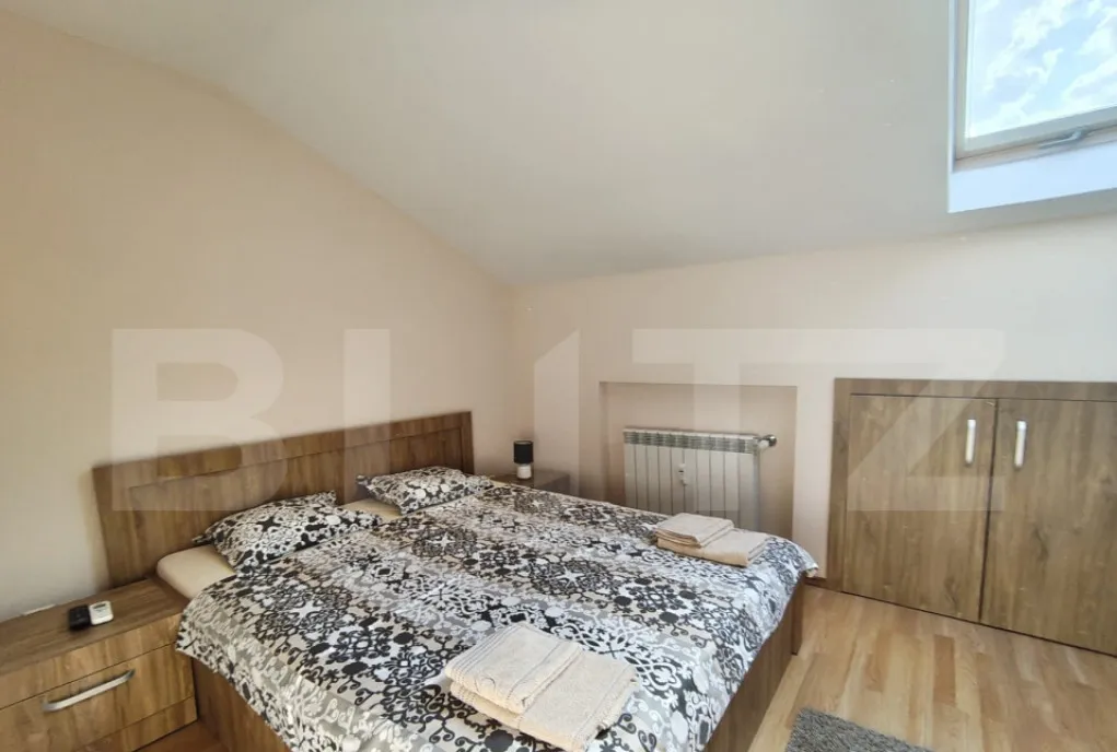 Etaj: doua dormitoare, baie cu jacuzzi, dressing mare si spatiu de depozitare.
