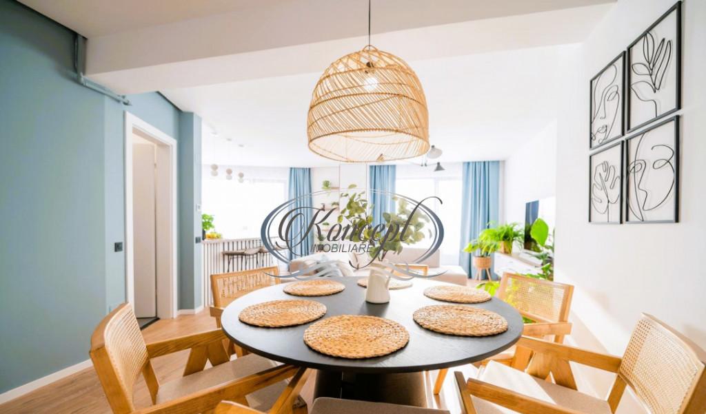 Koncept Imobiliare ofera spre vanzare un apartament premium cu 3 camere amplasat pe strada Eugen Ionesco in cartierul Europa una dintre cele mai apreciate zone rezidentiale din Cluj-Napoca Proprietatea este situata la etajul 1 al unui imobil exclusivist cu doar 2 niveluri si 6 apartamente oferind intimitate liniste si acces rapid catre principalele artere ale orasului Apartamentul dispune de o suprafata generoasa de 106 3 mp utili Compartimentarea actuala include un living spatios cu zona de dining si acces la balcon bucatarie complet echipata doua bai moderne si doua dormitoare luminoase In plus apartamentul beneficiaza de o terasa de 17 4 mp si acces la o curte comuna inchisa Exista un loc de parcare subteran cu priza pentru incarcare masini electrice iar un al doilea loc poate fi inchiriat Finisajele si dotarile sunt la cele mai inalte standarde Apartamentul beneficiaza de izolatie fonica suplimentara tavan pardoseala pereti laterali parchet triplu stratificat...