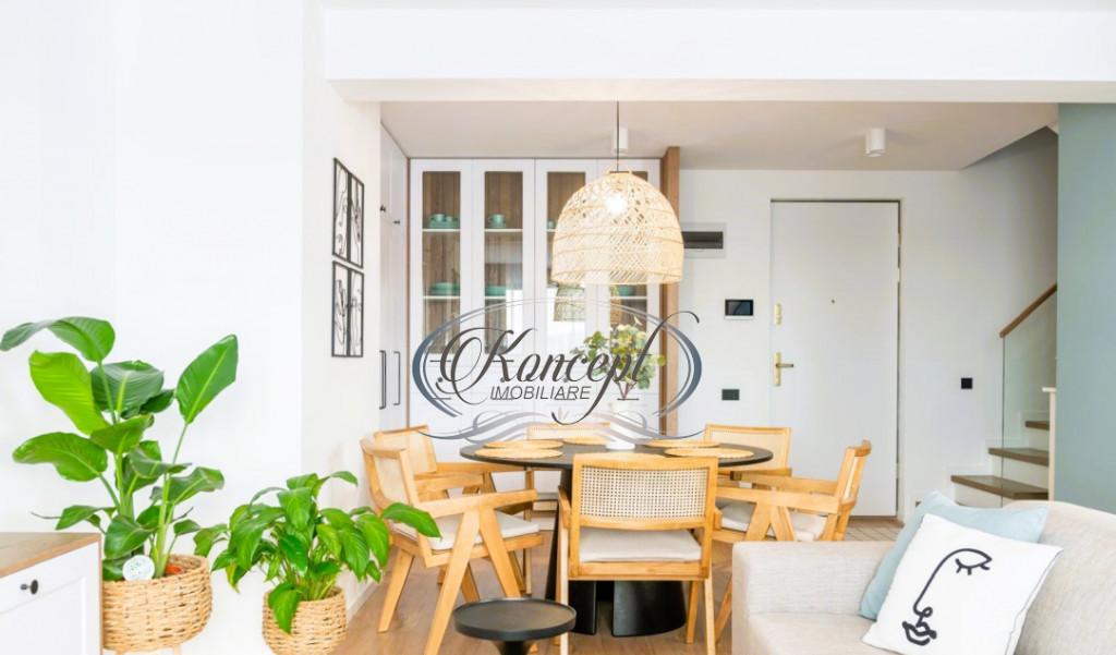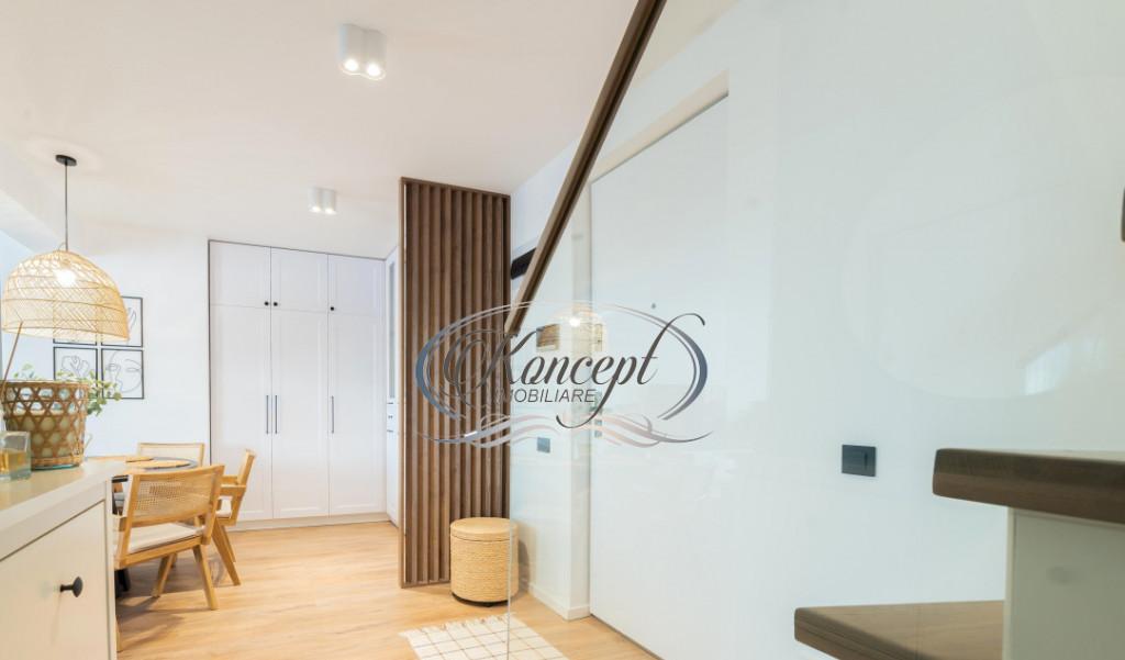 Koncept Imobiliare ofera spre vanzare un apartament cu 3 camere situat in cartierul Zorilor in exclusivistul ansamblu rezidential Wings recunoscut pentru arhitectura sa moderna si designul spectaculos Proprietatea se afla la etajele 8 si 9 ale imobilului beneficiind de o priveliste panoramica asupra orasului si de acces la facilitati premium specifice unui proiect de referinta din Cluj-Napoca Apartamentul are o suprafata utila de 97 mp si este dispus pe doua niveluri oferind o compartimentare inteligenta si echilibrata Spatiul include living generos cu bucatarie deschisa doua dormitoare trei bai hol si trei balcoane cu o suprafata totala de 16 1 mp care extind vizual zona de locuit si ofera un ambient aerisit si luminos Finisajele moderne si mobilierul de calitate creeaza un ambient elegant si confortabil iar incalzirea prin pardoseala asigura eficienta energetica si confort termic ridicat Apartamentul este complet finisat si se vinde la cheie fiind gata pentru mutare imediata Imobilul dispune de loc de parcare subteran optional la pretul de 15 000 euro iar ansamblul Wings ofera multiple facilitati - lifturi moderne spatii verzi amenajate si zone de relaxare Orientarea est-vest asigura lumina naturala optima pe tot parcursul zilei Prin pozitionarea sa in unul dintre cele mai apreciate ansambluri rezidentiale din Cluj si raportul excelent intre calitate si pret acest apartament reprezinta o alegere ideala pentru o familie care isi doreste confort stil si siguranta Pentru informatii complete programarea unei vizionari sau pentru a afla oferta noastra completa va stam la dispozitie telefonic prin e-mail sau la sediul agentiei noastre pe str Aviator Badescu nr 19 Cluj-Napoca Id intern P20856
