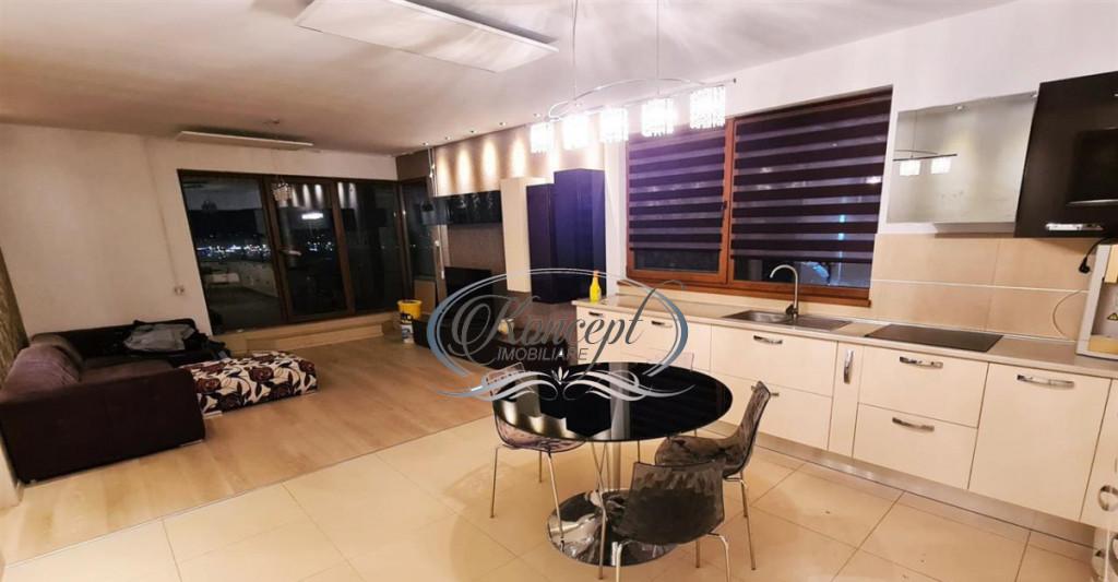 Koncept Imobiliare va propune spre inchiriere un apartament spatios situat la etajul 8 al unui imobil exclusivist care dispune de piscina sala de fitness si zona de relaxare prevazuta nbsp cu nbsp masa de ping-pong dartz si nbsp masa de biliard Proprietatea cochet aranjata in suprafata utila de 100 mp utili se preda complet utilata si mobilata fiind compartimentata astfel doua dormitoare doua bai living cu bucatarie open-space debara si o terasa generoasa de 60 mp Apartamentul este disponibil imediat si este potrivit persoanelor care au animale de talie mica nbsp Pentru informatii complete pentru programarea unei vizionari sau pentru a afla oferta noastra completa nu ezitati sa ne contactati telefonic prin e-mail sau la sediul agentiei noastre pe str Aviator Badescu nr 19 Cluj-Napoca sau str Eroilor nr 58A etaj 1 Floresti Id intern P16878