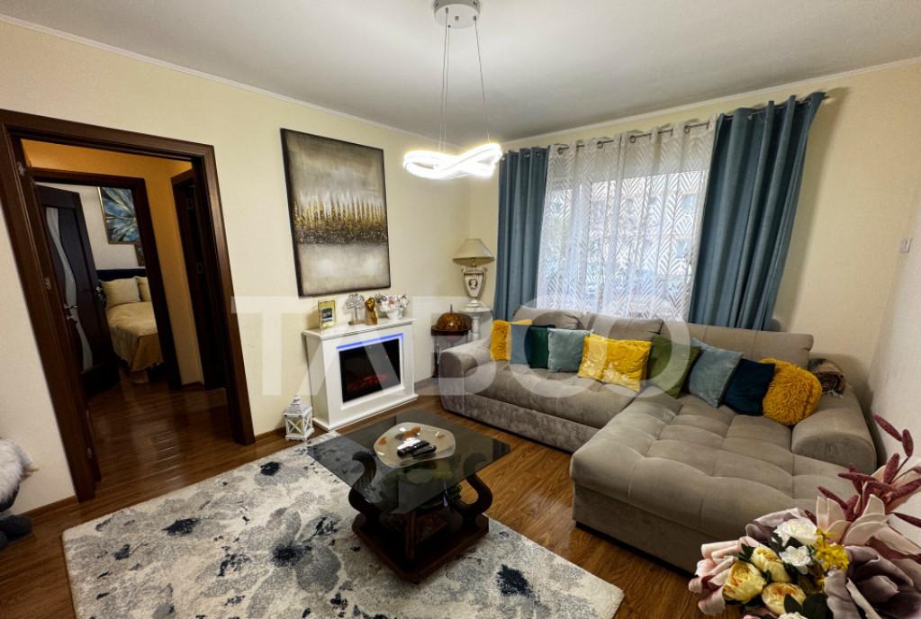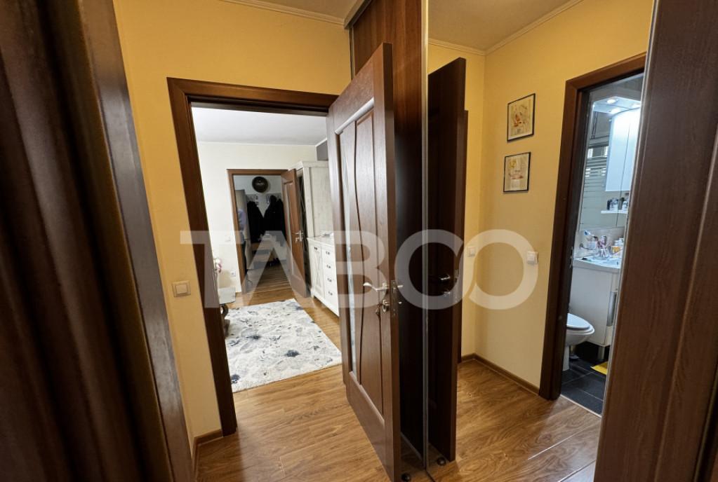 Apartament 3 camere de vanzare decomandat 69 mp zona Selimbar Sibiu Avantaje majore ale acestui apartament bull Zona Brana cea mai cautata zona din Selimbar bull Etaj intermediar 2 bull Doua locuri de parcare bull Compartimentat decomandat bull Exista posibilitatea de a ameanaja un WC de serviciu bull Balcon foarte mare bull Renovat in anul 2025 bull Apartament foarte luminos pe toata perioada zilei TABOO Imobiliare propune un apartament de vanzare cu 3 camere decomandat situat in localitatea Sibiu zona Selimbar aflat la etajul 2 intr -un imobil tip bloc cu regim de inaltime pe Parter 3 Etaje anul constructiei 2015 structura caramida Suprafata utila de 69 mp balcon de 15 mp Apartamentul este structurat astfel bull Hol bull Bucatarie bull Baie cu geam de aerisire bull Living cu iesire pe balcon bull Dormitor cu iesire pe balcon bull Dormitor cu dressing Finisajele interioare sunt clasice ...