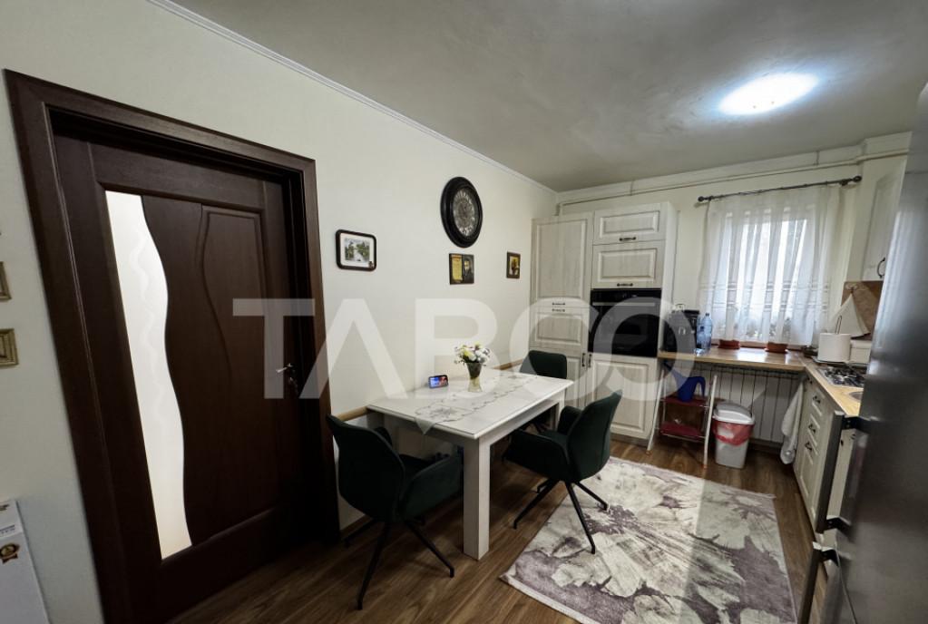 Comision 0 Exclusivitate apartament 3 camere de vanzare decomandat 66 mp Cisnadie nbsp Un apartament spatios in care te muti imediat deoarece este renovat complet instalatie electrica schimbata instalatii sanitare pechet usi bai renovate si mobilat complet Mobila de bucatarie este noua la comanda iar electrocasnicele sunt noi Apartamentul este pregatit pentru o familie cu copii dar si pentru cupluri tinere Blocul are acoperis cu tigla si are linistea deoarece fiind la etajul 4 nu are vecini deasupra Apartamentul are acces la uscataria de pe etaj iar din acest motiv nu usuci haine in casa si nici in balcon Borcanele cartofii si anvelopele masinii se pot depozita in pivnita atribuita apartamentului nbsp Avantaje majore ale acestui apartament bull nbsp Pivnita bull nbsp Renovat si mobilat la cheie nbsp bull nbsp Acces usor catre scoala gradinita si magazine nbsp bull nbsp Baie de serviciu nbsp bull nbsp Geam la baie TABOO Imobiliare...