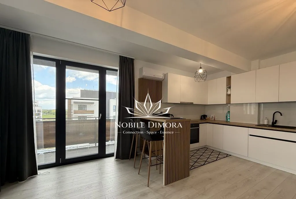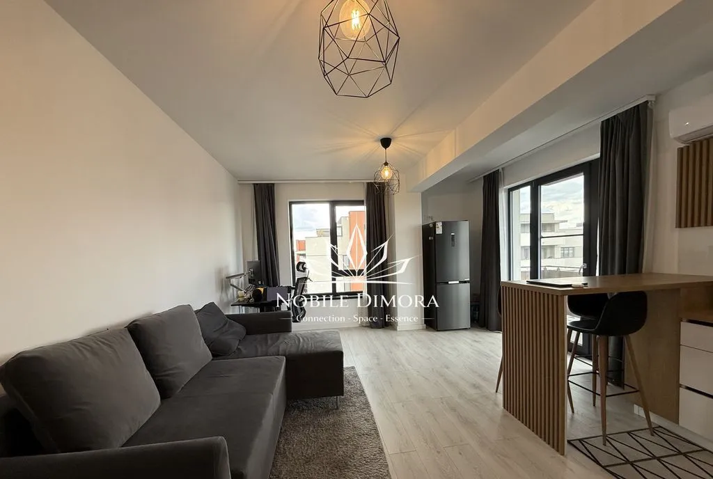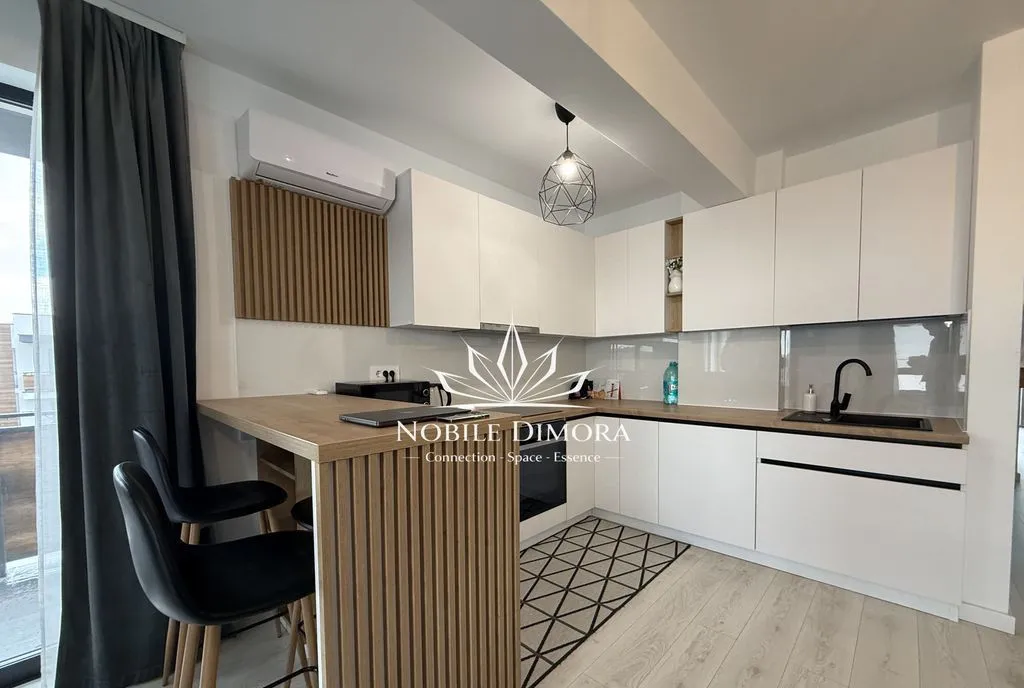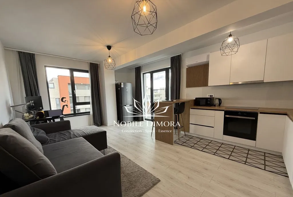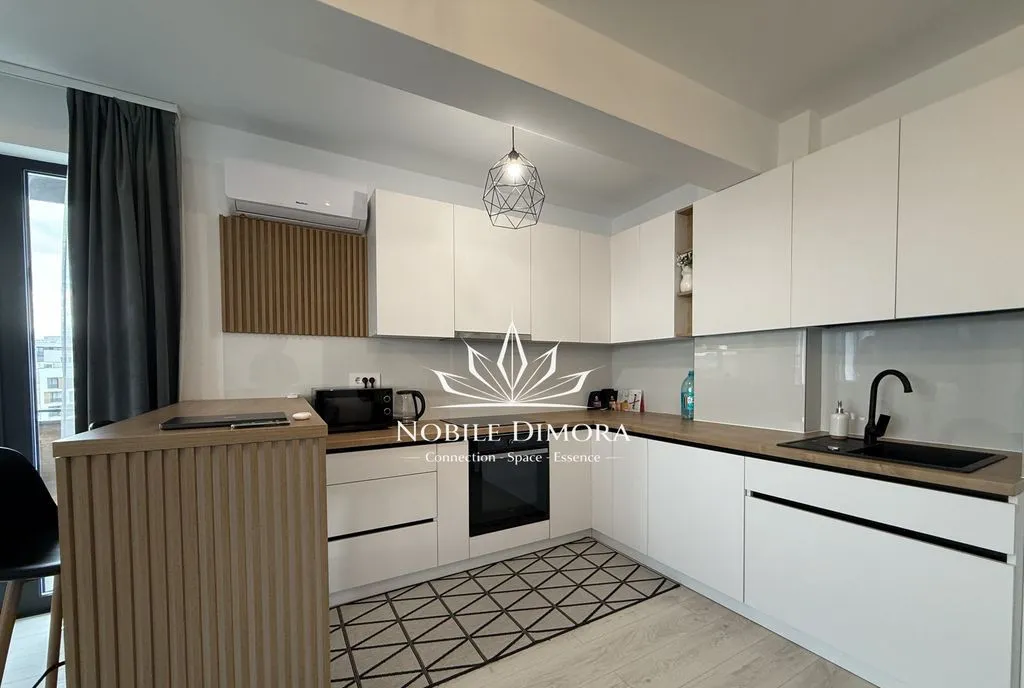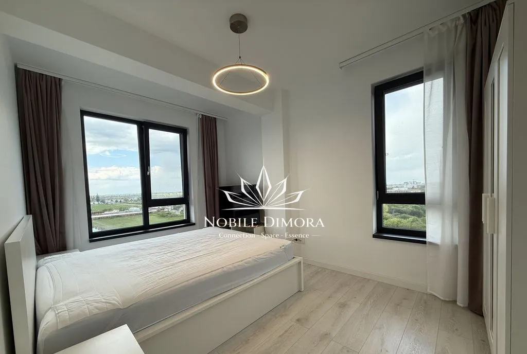 Este compartimentat in living cu bucatarie open space, dormitor, dressing, baie si balcon. Se inchiriaza mobilat si utilat, dispune de aer conditionat, incalzire in pardoseala si loc de parcare subteran inclus.