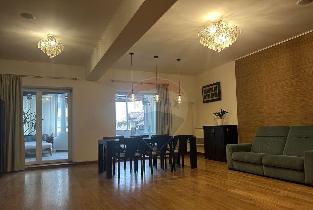 Va propunem spre inchiriere un apartament spectaculos cu 4 camere situat in unul dintre cele mai ravnite cartiere ale Capitalei Herastrau - Sos Nordului Cu o suprafata generoasa de 175 mp utili apartamentul este compus din 3 dormitoare generoase living spatios si luminos bucatarie 3 bai toate mobilate si utilate premium De asemenea apartamentul dispune de 2 terase generoase doua locuri de parcare in subteran si acces securizat Pentru mai multe detalii si vizionari nu ezitati sa ne contactati