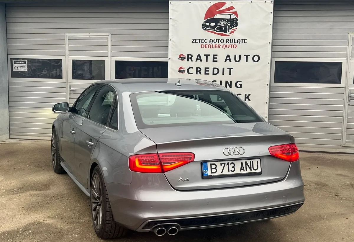 Vand Audi A4 fabricat in 2014 motorizare 2 0 TDI 150 CP cutie automata Multitronic fara probleme Masina este intretinuta cu foarte mare atentie fiind in proprietatea mea de aproape 4 ani Reviziile au fost efectuate la fiecare 10 000 km exclusiv cu ulei LIQUI MOLLY Top Tec 4200 5W30 iar distributia a fost schimbata la 258 510 km Dotari importante Climatronic pe 2 zone Lane Assist Side Assist Breaking Guard asistenta la franare de urgenta Senzori de parcare fata spate Faruri Bi-Xenon cu LED-uri adaugate upgrade LED It Up Oglinzi electrice incalzite Volan multifunctional Jante aliaj 16 inch cu anvelope de iarna Nokian iar cele de vara sunt pe 18 inch Proprietar ofer fiscal Pret Brut Culoare Gri VIN serie sasiu WAUZZZ8K2EN026100