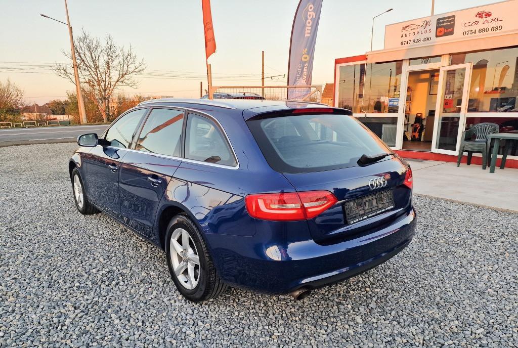 Audi A4 b8 5 avant An 2013 Motor 2L 170 CP Climatronic Navigatie mare color Car play Oglinzi electrice incalzite 4 geamuri electrice 10 air-baguri Xenon Proiectoare ceata Camera spate Carlig demontabil Jante aliaj 17 Esapament curat Filtru de particule activ Masina nu are daune se poate demonstra prin raport Kilometrii sunt reali