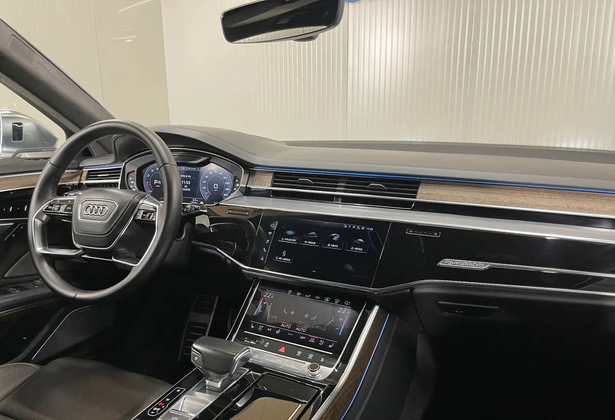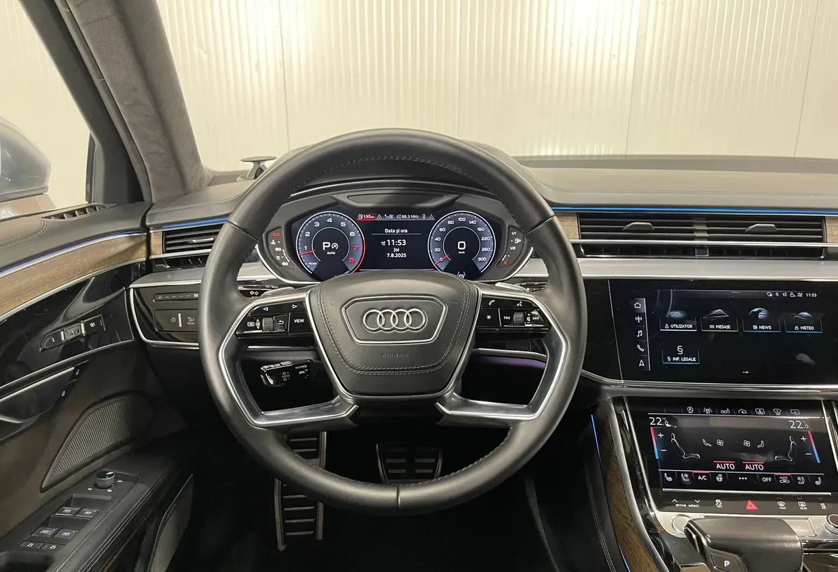 Specificatii Istoric de service Prima inmatriculare 06 10 2017 Quattro - 4x4 Mild Hybrid Benzina Electric Sistem audio BANG amp OLUFSEN High End Plafon panoramic actionat electric Transmisie automata Faruri LED Cu semnalizare dinamica Tapiserie piele Plafon alcantara Camere 360 cu functie 3D Scaune fata cu reglaj electric incalzite ventilate memorii si masaj Scaune spate individuale cu reglaj electric incalzite ventilate memorii si masaj Perdelute geamuri spate laterale si luneta Monitoare pentru locurile din spate TV Tableta cotiera spate Suspensie pneumatica reglabila Punte spate viratoare Soft close usi si portbagaj Moduri de condus individual dynamic comfort auto efficiency Heads-up display Digital cockpit personalizabil Adaptive Cruise Control Pilot automat adaptiv Avertizare viteza Asistent vedere noapte - Night Vision Asistent adaptiv conducere Avertizare distanta Audi pre sense Avertizare schimbare si parasire banda Faruri automate Senzori de ploaie Jante aliaj 20 quot Keyless Entry/GO Climatronic 4 zone Sistem Start/Stop Auto Hold Volan cu reglaj electric incalzit imbracat in piele si multifunctional Padele Apple CarPlay Conectare telefon prin Bluetooth Iluminare ambientala LED Lumini de zi si stopuri LED Functie telecomanda garaj Frana de parcare electrohidraulica Geamuri electrice fata-spate Oglinzi reglabile electric rabatabile si incalzite Controlul presiunii in pneuri Cotiera centrala fata cu spatiu de depozitare Cotiera centrala spate cu suport pentru pahare ABS/ESP Computer bord Inchidere centralizata Servodirectie 1 cheie Cod intern AP-135 Dotari Audio si tehnologie o Apple Carplay o Bluetooth o Radio o Sistem hands-free o Port USB o Wireless charging o Sistem navigatie o Sistem audio o Head up display o Monitor cu touch screen o Control vocal o Conexiune Internet Confort si echipamente optionale o Climatronic 4 zone o Jaluzele electrice geamuri spate o Plafon panoramic o Tapiterie piele o Climatizare spate o Scaun sofer ajustabil electric o Scaun pasager ajustabil electric o Incalzire scaun sofer o Incalzire scaun pasager o Suport lombar electric scaun sofer o Suport lombar electric scaun pasager o Scaune fata ventilate o Scaune fata cu masaj o Scaun cu memorie o Incalzire scaune spate o Scaune spate ventilate o Scaune spate cu masaj o Cotiera fata o Cotiera spate o Volan piele o Volan sport o Volan cu comenzi o Volan reglabil electric o Volan multifunctional o Incalzire volan o Volan cu schimbator de viteze o Schimbator viteze piele o Keyless entry o Keyless go o Senzor ploaie o Geamuri electrice fata o Geamuri electrice spate o Privacy glass o Stergatoare parbriz Electronice si sisteme de asistenta o Pilot automat adaptiv distronic o Faruri LED o Senzori parcare fata o Senzori parcare spate o Camera video 360o o Oglinzi exterioare cu reglare electrica o Oglinzi exterioare incalzite o Oglinzi exterioare rabatabile electric o Avertizare unghi mort o Asistenta schimbare banda o Lane assist o Controlul distantei o Limitator viteza o Asistenta la franare o Controlul tractiunii o Asistenta in rampa o Sistem recunoastere indicatoare de viteza o Sistem recunoastere semne trafic o Asistenta faza lunga o Faruri autoadaptive o Faruri cu temporizator o Lumini de zi LED o Stopuri LED o Follow me home o Iluminare interioara LED o Sistem Start/Stop o Senzori presiune roti o Frana parcare electrica o Servodirectie Performanta o Jante aliaj 20 o Suspensie confort o Suspensie controlata electronic o Suspensie sport o Suspensie reglabila o Suspensie pneumatica Siguranta o ABS o ESP o Franare asistata o Sistem asistenta franare oras o Sistem franare automata pietoni o Sistem activ franare urgenta o Sistem avertizare pre-coliziune o Avertizare sonora pre-coliziune o Sistem pre-coliziune spate o Sistem pre-coliziune lateral o Sistem avertizare marsarier o Sistem acustic avertizare pietoni