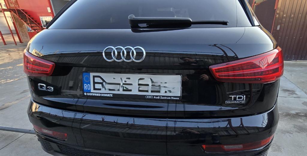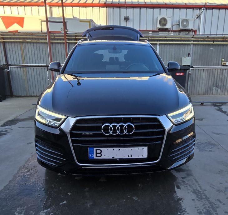 Proprietar vand Audi Q3 Quattro motor 2 0 TDI 110 KW 150 CP Euro 6 cutie S-Tronic 7 1 viteze Dotari - Faruri fata led cu proiectoare led stopuri spate led cu semnalizare dinamica - Spalatori faruri - Asistent schimbare automata faza scurta-faza lunga - Asistent avertizare unghi mort cu atentionare pe oglinzi - Senzori parcare fata senzori parcare spate si camera marsalier - Keyless Go si Keyless Entry - Inchidere deschidere geamuri si trapa din telecomanda - Incalzire auxiliara pentru degivrare parbriz - Jante originale Audi pe 18 - Masina se vinde cu anvelope de iarna si anvelope de vara - Pachet lumini ambientale interior usi led - Navigatie profesionala MMI 3G cu cititor de carduri cartela sim si HDD - Navigatia detine modul Wi-Fi internetul de pe cartela sim se reda in masina prin Wi-Fi - Video in motion dezactivat poate reda videoclipuri de pe card in timp ce conduceti - Sistem audio cu 8 difuzoare subwoofer - Pachet din fabrica S-Line exterior bara fata si bara spate S-line - Pachet interior S-line volan S-Line cu piele perforata schimbator viteze S-Tronic si scaune fata S-Line - Interior piele cu piele alcantara perforata fara urme de uzura - Tapiterie plafon neagra pt cunoscatori - Climatronic 2 zone - Torpedou refrigerant - Senzori ploaie senzori lumina senzor schimbare faza scurta-faza lunga - Sistem START STOP - Sistem Auto-Hold - Oglinzi electrice rabatabile electric degivrate cu tehnologie antiorbire - Oglinda interior activa cu tehnologie antiorbire - Pachet privacy glass original Audi - Trapa panoramica cu 2 deschideri - Scaune fata full electric incalzire in 3 trepte - Bancheta spate rabatabila 1 3 sau 2 3 - Carlig original audi care se activeaza prin buton - Control presiune anvelope cu avertizare - Geamuri electrice fata-spate cu impuls toate 4 sunt cu impuls - Hayon spate actionat electric cu posibilitate inchidere deschidere din masina sau inchis deschis plus inchidere totala masina de pe hayon
