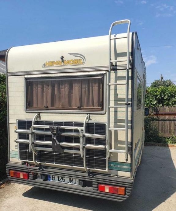 Autorulota Ford Transit an de fabricatie 1995 motor diesel 2500 cmc complet revizionat recent merge perfect Autorulota este foarte bine intretinuta A fost masticata anul trecut nu are nici infiltratii nici mirosuri neplacute Are doua zone de dormit una deasupra cabinei soferului si alta in spate la locul de masa Zona de bucatarie are frigider pe gaz/12V/220 care functioneaza perfect aragaz 2 ochiuri pe gaz si chiuveta Deasupra aragazului este hota iar langa frigider este dulapul de depozitare Baia este prevazuta cu WC cu golire exterioara chiuveta si dulap Bateria chiuvetei are si cap de dus Autorulota este deservita de un panou solar 2 baterii si un invertor 220 fiind potrivita si unei vacante off camping Toate geamurile au plase de tantari si parasolar
