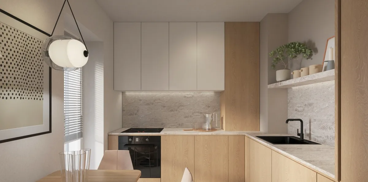 Desfasurat pe o suprafata totala utila de 64,7 mp, apartamentul este inteligent compartimentat, lasand lumina naturala sa puna in valoare mai mult spatiul locuibil.