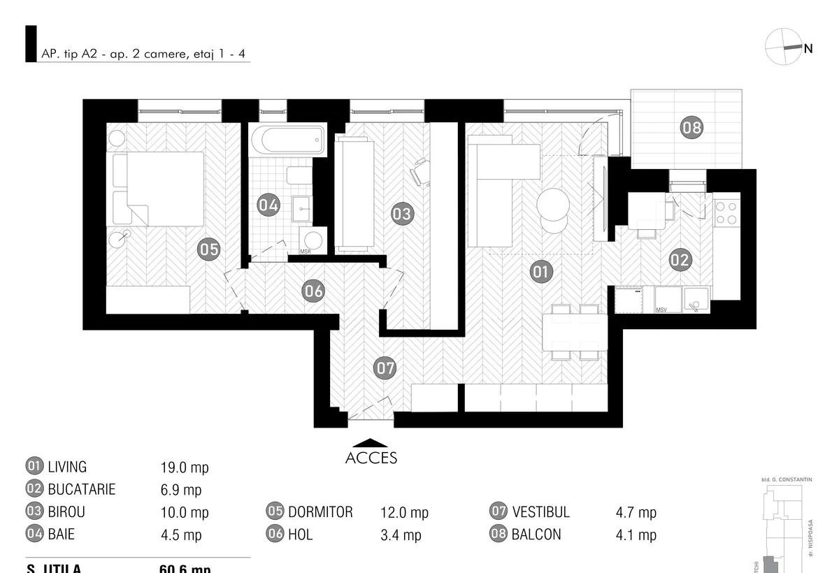 Pretul include TVA si nu include boxa depozitare, loc de parcare la subsol sau suprateran.