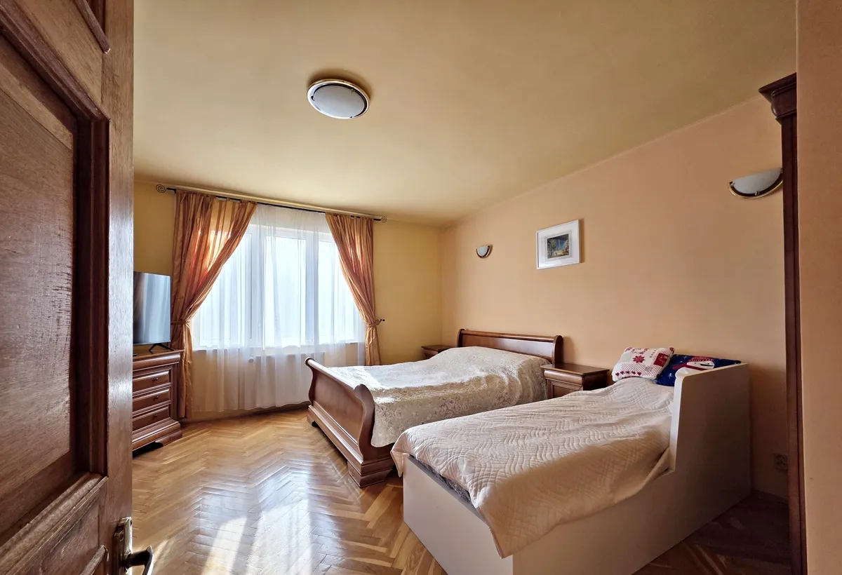- la etaj gasim doua dormitoare spatioase, de 22,30 mp, respectiv 19 mp, care ofera spatiu suficient pentru garderoba si liniste pentru odihna. Biroul de 7,70 mp, cu balcon, este ideal pentru work-from-home sau studiu. Etajul este completat de o baie de 5,84 mp si un dressing de 2,63 mp.