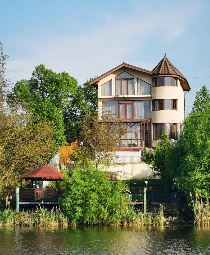 cu deschidere la, lac, ponton pe lac, P+1+M 8 cam. 4 bai, centrala proprie, put in curte, cf. teren 956 mp, amprenta 140 mp pret 465000 euro, rugam si oferim maxima seriozitate, scd 420 mp, su 375 mp, mob. utilata, comision agentie 3% + TVA facturabili,