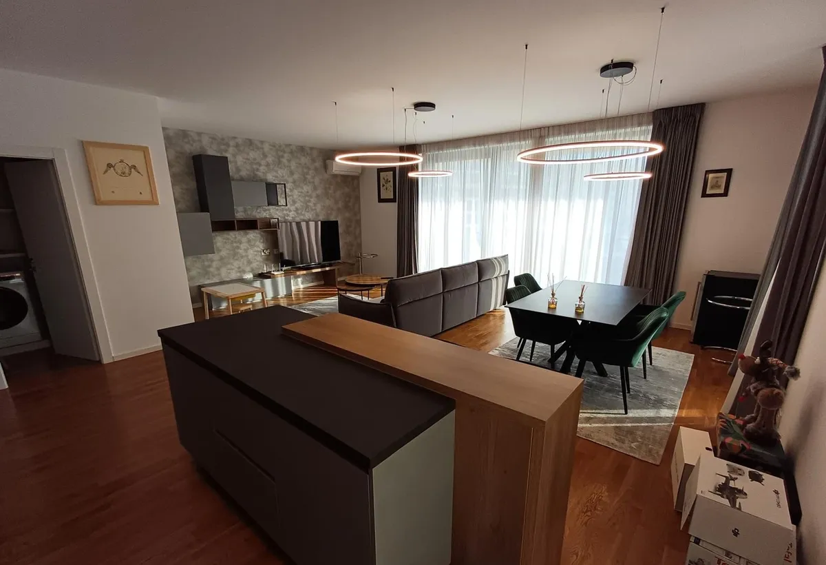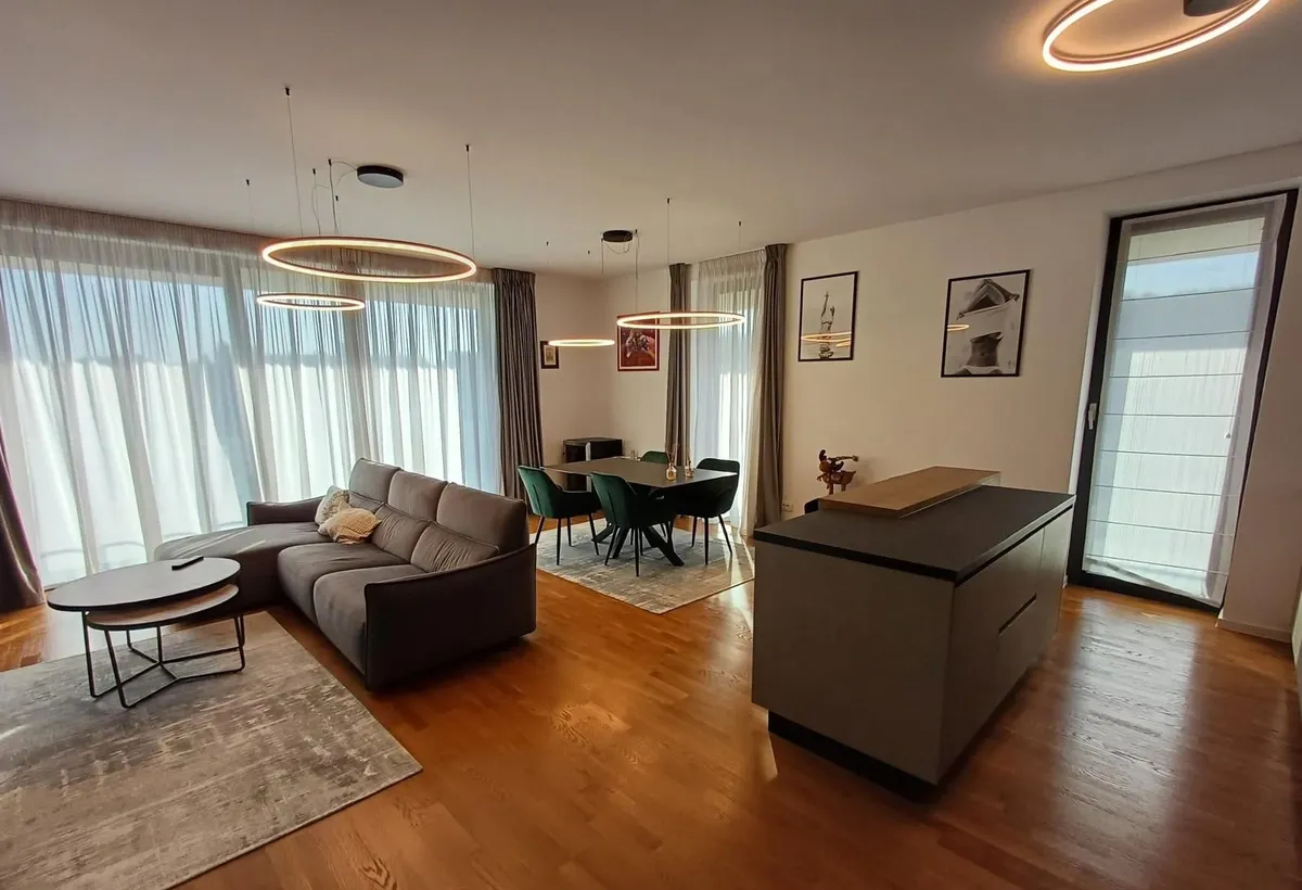 Va prezentam spre inchiriere apartament de 4 camere in ansamblul rezidential Green Vista pozitionat in Pipera foarte aproape de Padurea Baneasa Apartamentul este renovat cu finisaje de foarte buna calitate beneficiaza de centrala proprie si se inchiriaza complet mobilat si utilat inlcusiv masina de spalat vase Dispune de un dressing generos 2 bai si terasa de 30 mp ofera un spatiu ideal pentru relaxare Loc de parcare subteran inclus in pret si pentru al 2-lea loc de parcare exista posibilitatea inchirierii in cadrul complexului Complexul rezidential se afla intr-o zona curata si foarte linistita in imediata apropiere de padurea Baneasa de Sala sportiva Atlantis si de banci farmacii si cateva cafenele In apropiere de Complex se afla Scoala Questfield School Scoala Olga Gudynn Scoala Americana Internationala Scoala internationala Mark Twain In proximitate se regasesc marketurile Lidl Mega Image iar Baneasa Shopping Sity magazinul IKEA Carrefo...