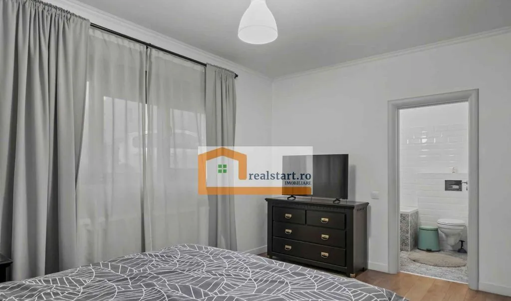 - dormitorul matrimonial are baie proprie cu cada si geam