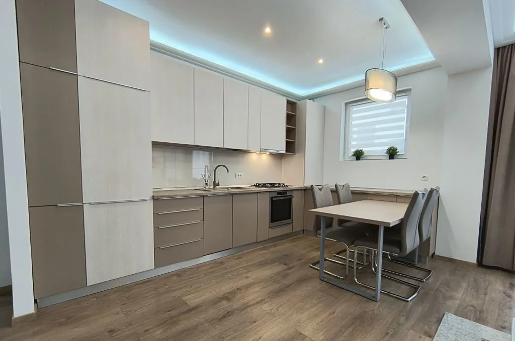 Apartamentul dispune de finisaje deosebite, de lux, climatizare, centrala termica, tamplarie PVC Salamander cu geamuri tripan , baie complet mobilata, bucatarie mare dotata cu electrocasnice noi si moderne (masina spalat vase, masina spalat rufe, frigider incorporat, cuptor electric, plita gaz, hota).
