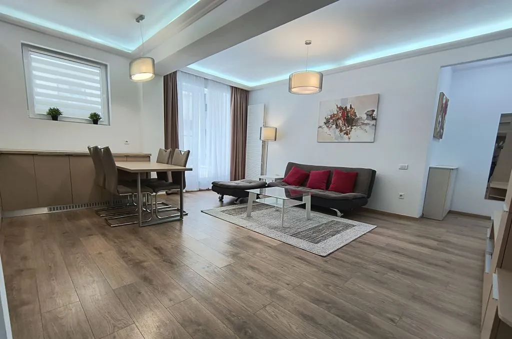 Nivelul chiriei propus este de 890 EUR, pentru apartamentul complet mobilat si un loc de parcare la subsol, unde accesul se face cu telecomanda.