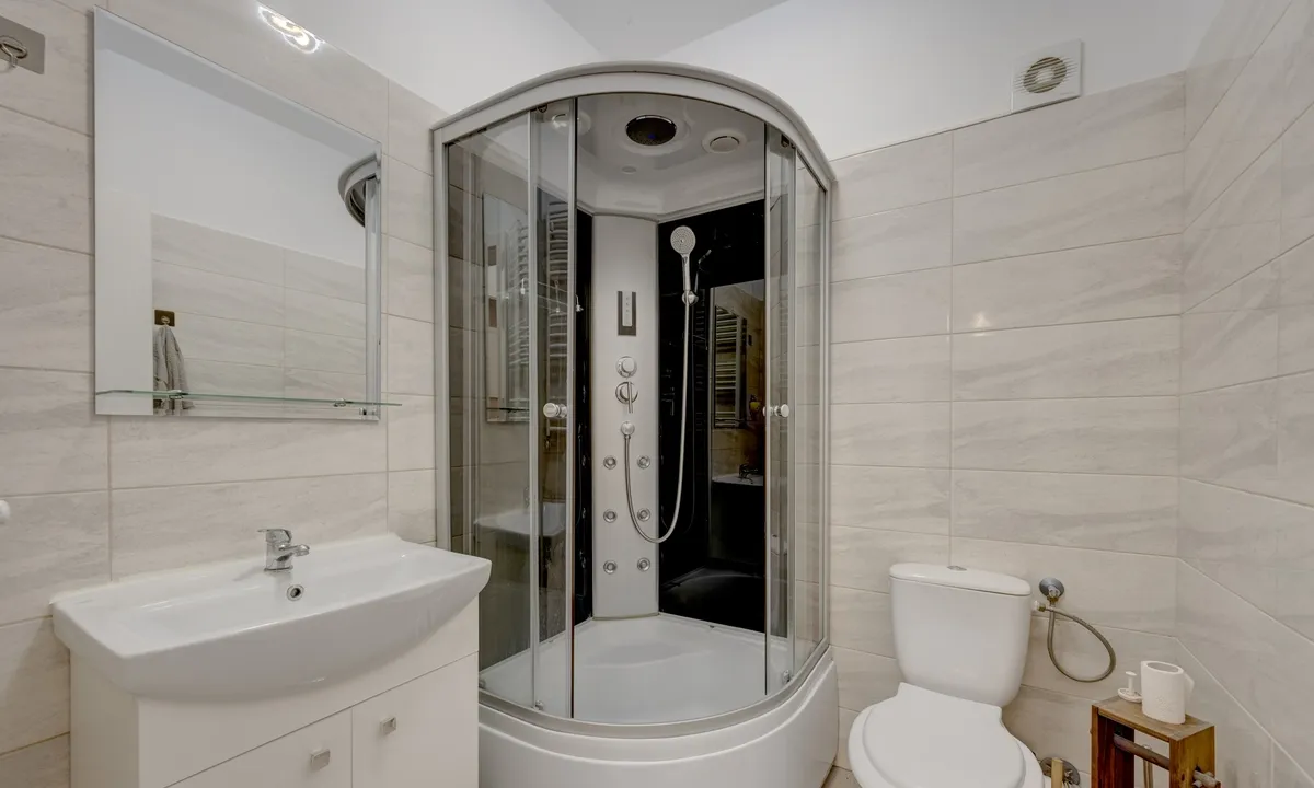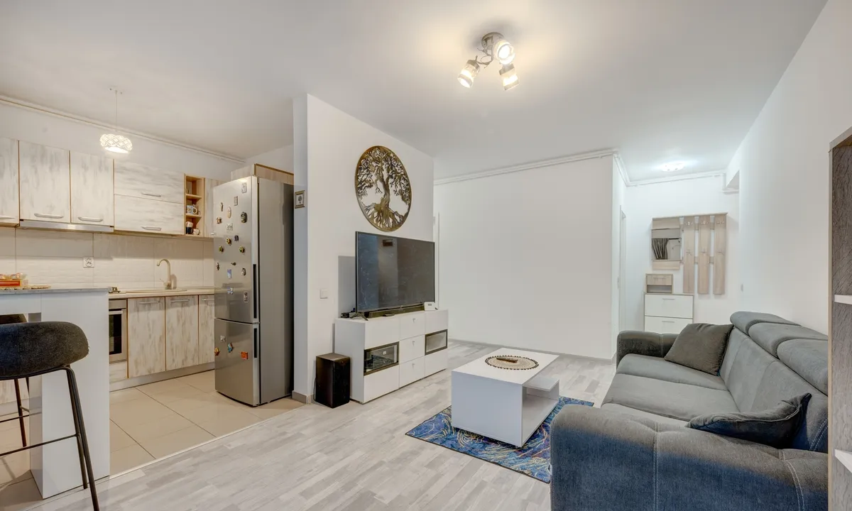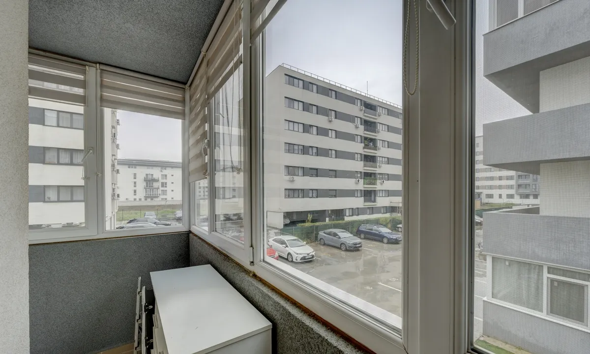Apartamentul a fost achizitionat de la dezvoltator de catre actualii proprietari, are 72 mp si este compartimentat in felul urmator: sufrageria e deschisa cu bucataria si formeaza un spatiu de cca. 24 mp. Totusi, pentru cei care vor neaparat bucatarie separata de spatiul de zi, aceasta poate fi inchisa. Centrala termica este montata in bucatarie. Pe holul de acces spre cele 2 dormitoare a fost gandit spatiul pentru masina de spalat si uscator. O baie este dotata si cealalta baie are cabina de dus, asa ca o familie se poate descurca usor, fara cozi la baie dimineata. Balconul are aproape 11 mp si se intinde pe sufragerie, bucatarie si unul dintre dormitoare. A fost inchis de catre actualii proprietari cu geam termopan, avand astfel atat confort termic cat si fonic si iti poti organiza in el si spatii de depozitare suplimentare.