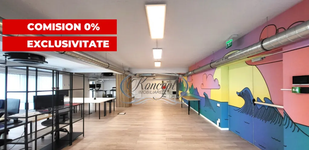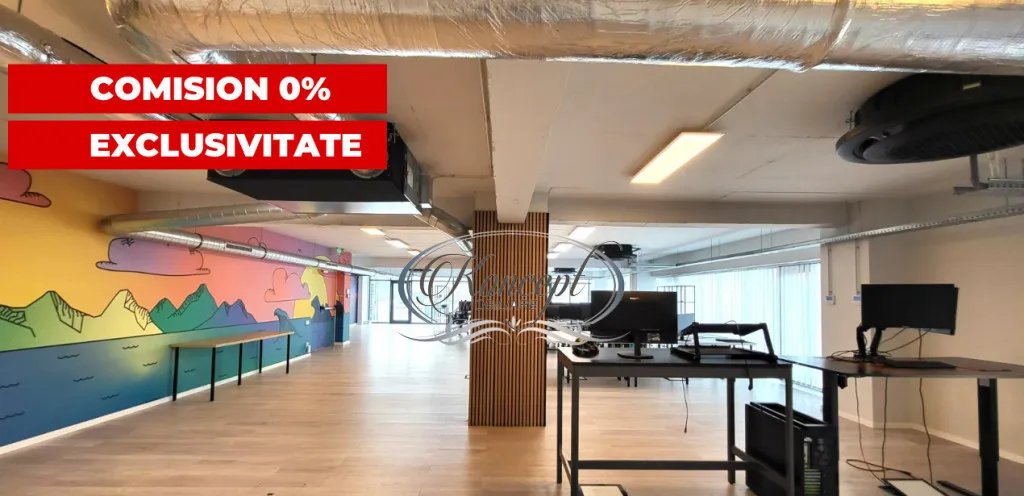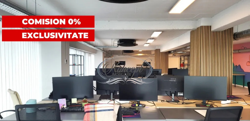 Koncept Imobiliare va ofera spre inchiriere un spatiu de birou in cladire de birouri strict nonrezidentiala, situat in Cluj-Napoca, pe str. Fabricii nr. 105, intr-o zona cu acces facil si conexiuni bune catre principalele artere ale orasului. Proprietatea ocupa integral etajul 7, beneficiind de expunere N-E-S si panorama deschisa catre oras si zona industriala, un avantaj important pentru companii care isi doresc lumina naturala, vizibilitate si o atmosfera de lucru aerisita. Spatiul are 280 mp utili si este completat de 3 balcoane ce insumeaza aproximativ 28 mp. Compartimentarea este preponderent open space, la care se adauga 2 incaperi separate (utilizate anterior ca sala de sedinta si studio de podcast), doua grupuri sanitare distincte femei-barbati, precum si chicineta. Inaltimea utila de 3 m contribuie la confort si la senzatia de spatiu, iar configuratia permite adaptarea usoara pentru activitati diverse, de la sedii de companie, IT, servicii, consultanta sau back-office, pana la activitati medicale, in functie de nevoile de organizare. Finisajele sunt moderne, iar infrastructura tehnica este potrivita pentru un birou functional: ventilatie cu aport de aer proaspat, sistem HVAC cu ventiloconvectoare, 4 zone de climatizare cu setari de temperatura independente, iluminat LED si retelistica completa. Exista si camera server dedicata, un plus pentru echipe care depind de conectivitate si echipamente IT. Cladirea ofera administrare, doua lifturi, supraveghere video, videointerfon, acces securizat cu cartela si sistem de pontaj, cu acces 24/7, inclusiv pe etaje. Costurile de administrare sunt reduse, fiind mentionata o suma orientativa de aproximativ 100 euro/luna, fara calcul la mp. In pret sunt incluse 5 locuri de parcare subterane nominale, cu acces securizat pe baza de telecomanda, iar pentru vizitatori exista posibilitati de parcare in zona. Spatiul este disponibil imediat, ceea ce il face potrivit pentru companii care au nevoie de relocare rapida intr-un birou gata de utilizare in zona Fabricii, Cluj-Napoca. Pentru informatii suplimentare, programarea unei vizionari sau pentru a afla oferta noastra completa va stam la dispozitie telefonic, prin e-mail sau la sediul agentiei noastre, pe str. Aviator Badescu, nr. 19, Cluj-Napoca.