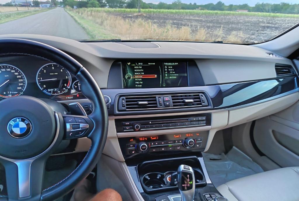 BMW 520 F10 AN fabricatie 2013 / euro 6 Cutie automata Motorizare 2 0 diesel 220 CP Culoare negru Soft stage 1 interior crem piele pachet volan M navi mare tobe sport cu sunet pe telecomanda 5 usi