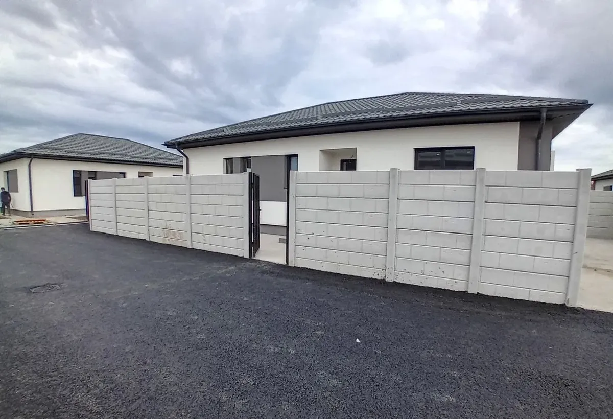 Situata la 5 minute de bulevardul principal mers pe jos Detalii Suprafata utila 72 mp Teren 376 mp 3 camere living 2 dormitoare 2 bai dintre care una apartine dormitorului matrimonial Terasa generoasa de 28 mp Geamuri tripan pentru izolare termica si fonica superioara Icirc ncalzire in pardoseala pentru confort sporit Placa beton peste parter Pod pentru depozitare Utilitati si dotari Conectata la gaz si curent electric Apa prin put forat adancime 17 m Fosa ecologica Casa este construita cu materiale de calitate avand un design modern si o compartimentare eficienta perfecta pentru o familie care isi doreste un camin gata de locuit Comision 0 Oferim broker bancar gratuit pentru obtinerea celei mai bune solutii de finantare