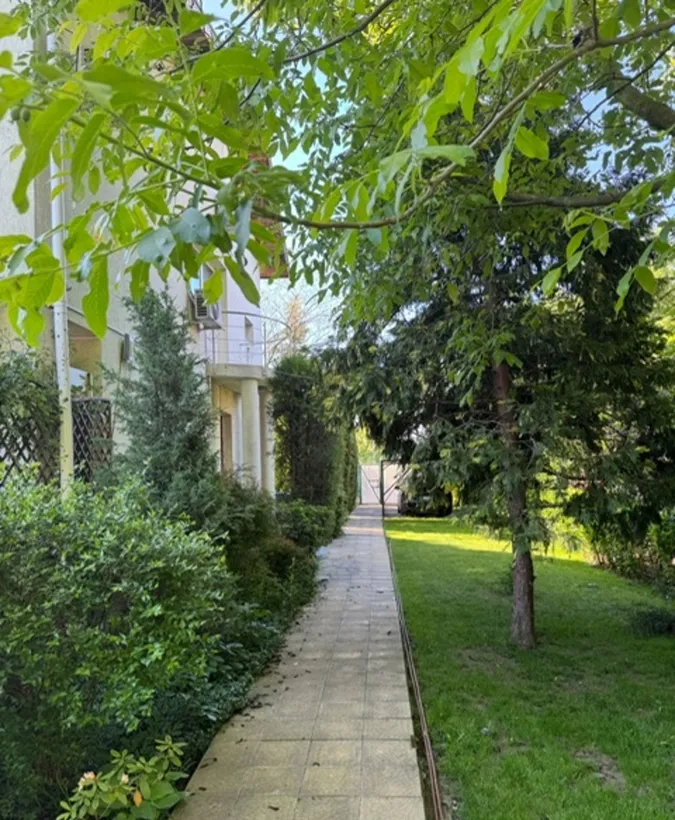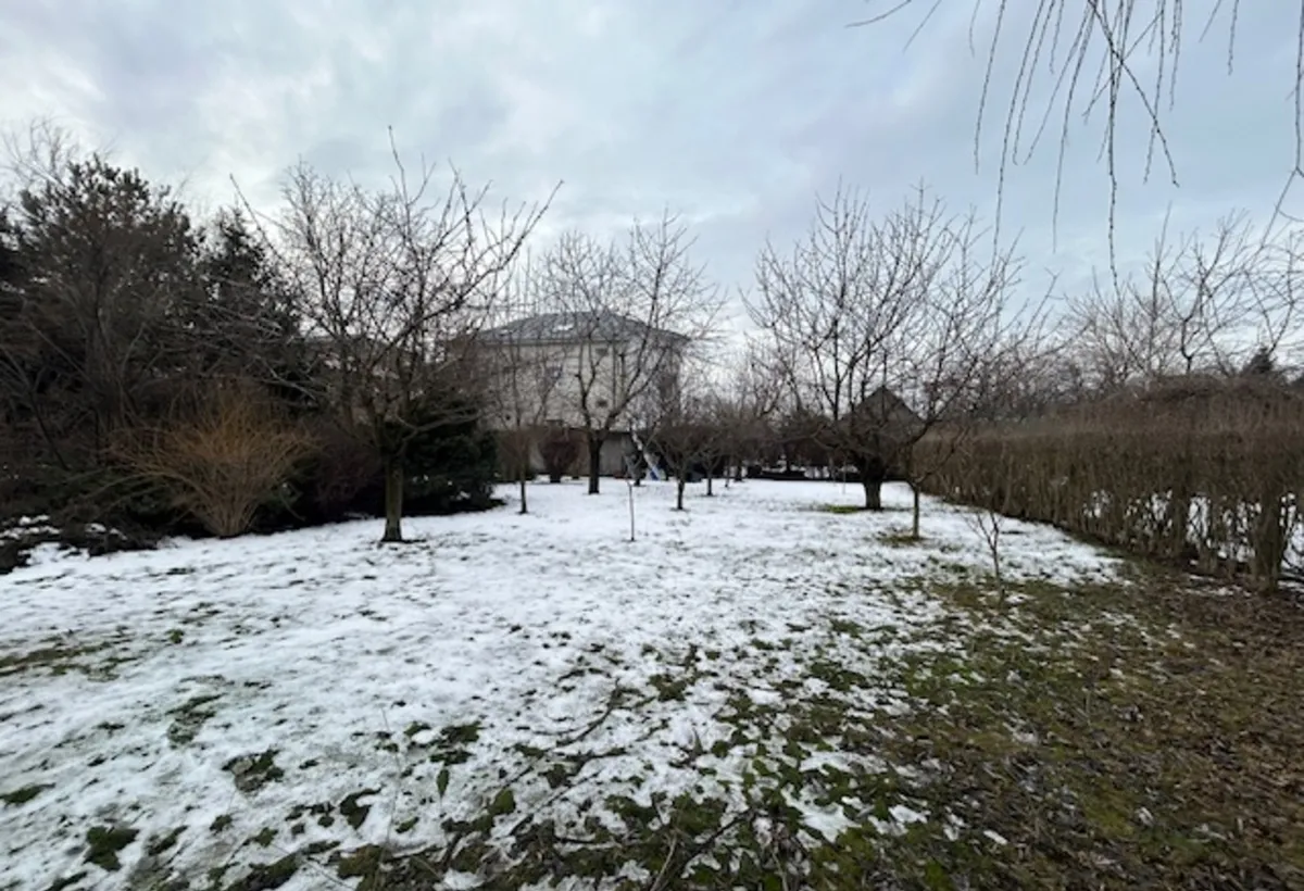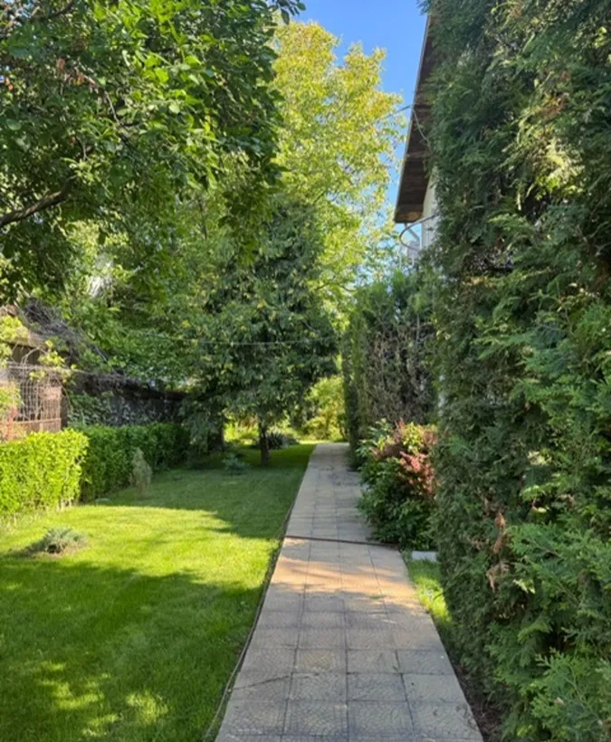 Terenul in suprafata de 2000 mp se bucura de o livada incantatoare, cu ciresi, meri, peri, pruni, gutui, caisi, imbratisata armonios cu tei, brazi, pini si salcie.