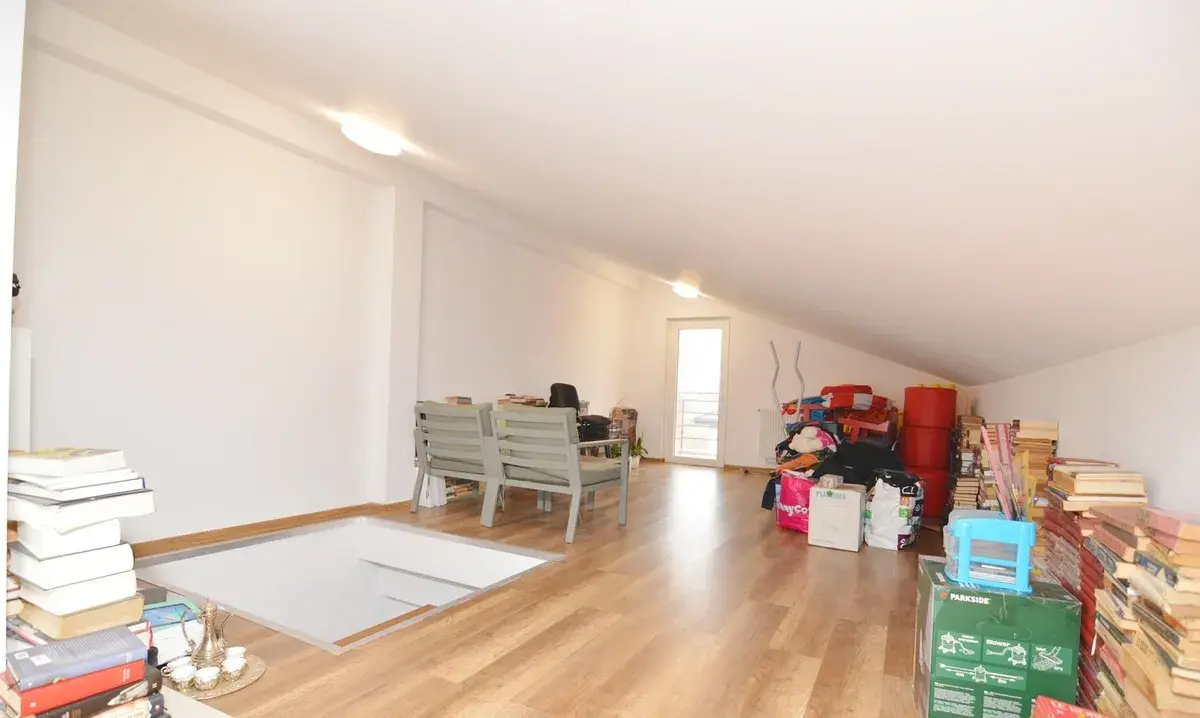 Vila tip duplex, construita in anul 2009, este structurata pe 3 nivele ( P+1+Pod) avand in total o Suprafata Utila de 161 mp, iar daca includem si balconul si terasele generoase de care dispune se ajunge la o Suprafata Utila Totala de 186 mp . Terenul proprietatii are o suprafata de 217 mp, amprenta vilei fiind de 77 mp .