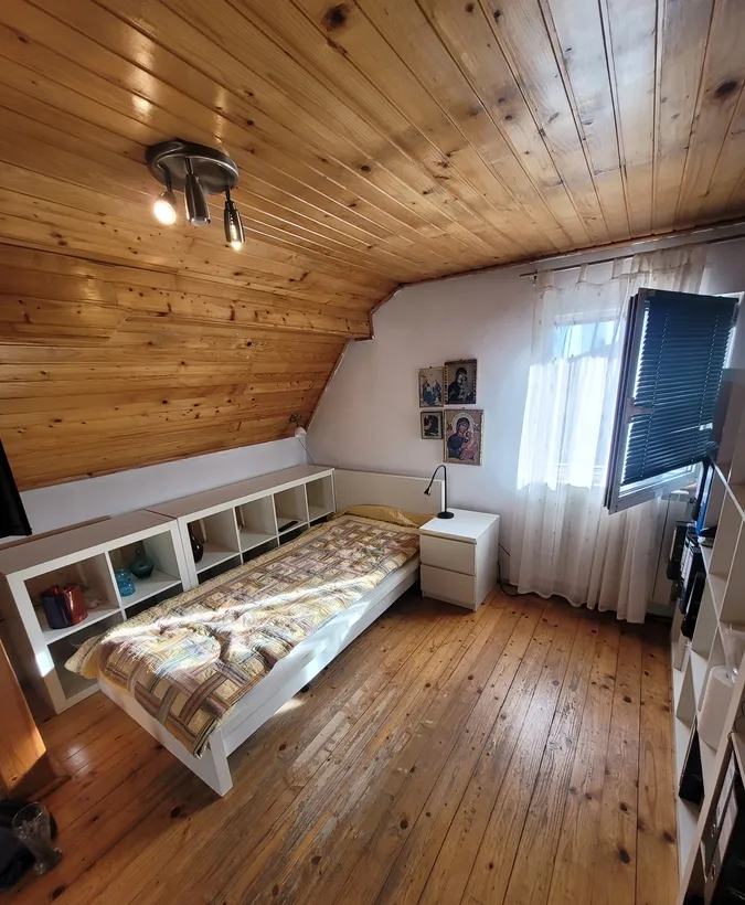 etaj - dormitor, camera (posibil dormitor), baie cu cada.