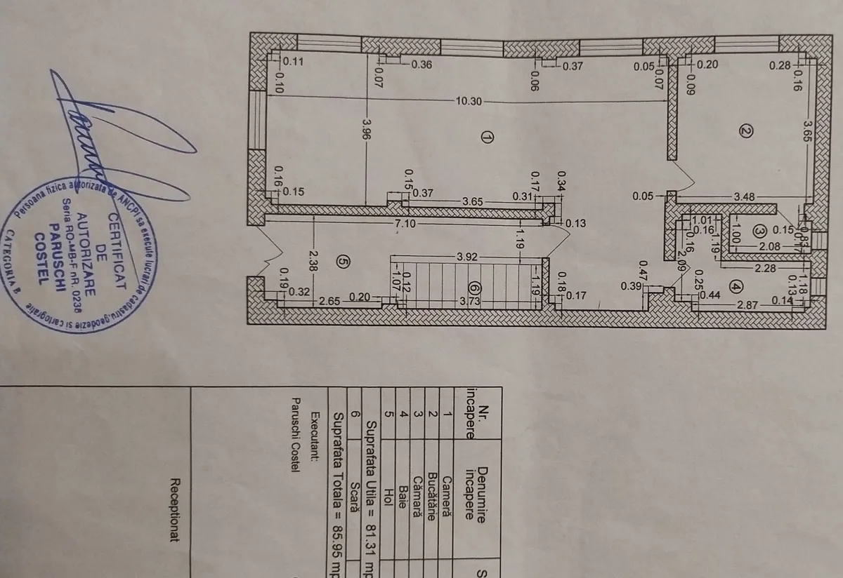 -la parter -1 camera (living), bucatarie, debara, baia, hol- suprafata utila 88 mp.