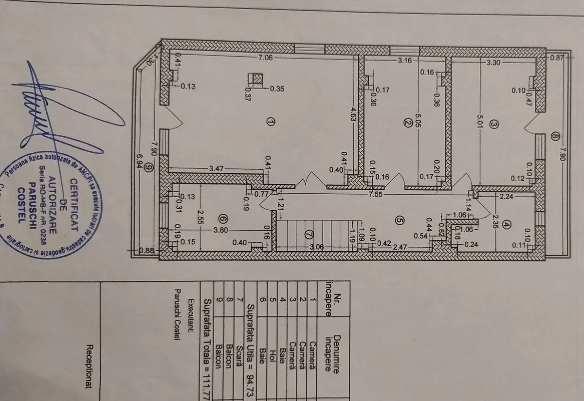 -la etaj trei camere, doua bai, hol, doua balcoane- suprafata utila 112 mp.