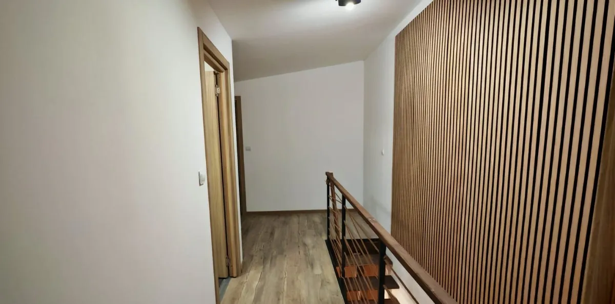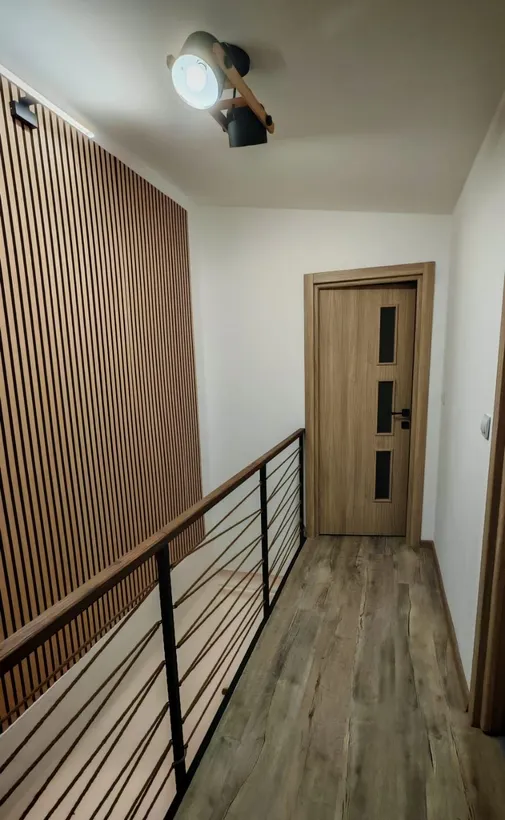 La Etaj sunt 2 dormitoare fiecare cu balcon,hol si o baie cu aerisire.(accesul catre etaj se face pe scara interioara)