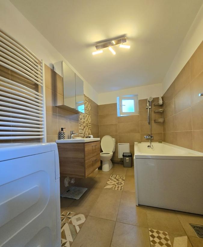 O casa primitoare pentru tine si familia ta Daca iti doresti un camin spatios modern si confortabil aceasta casa individuala este exact ce cauti Situata pe un teren de 291 mp ofera intimitate functionalitate si un spatiu generos atat in interior cat si in curtea proprie Cu o amprenta la sol de 104 mp casa se desfasoara pe parter si etaj avand inclus si un pod pentru depozitare accesibil printr-o scara tip chepeng Spatiile interioare sunt bine organizate avand 4 dormitoare un living luminos o bucatarie inchisa si 3 bai dintre care una este dedicata dormitorului matrimonial impreuna cu un dressing Materialele premium utilizate asigura un ambient elegant si durabil vopsea Benjamin Moore placi ceramice italiene si obiecte sanitare premium In plus casa dispune de centrala proprie cu incalzire prin pardoseala si calorifere oferind confort termic pe tot parcursul anului Curtea este impartita inteligent in fata ai loc de parcare pentru doua masini iar in...