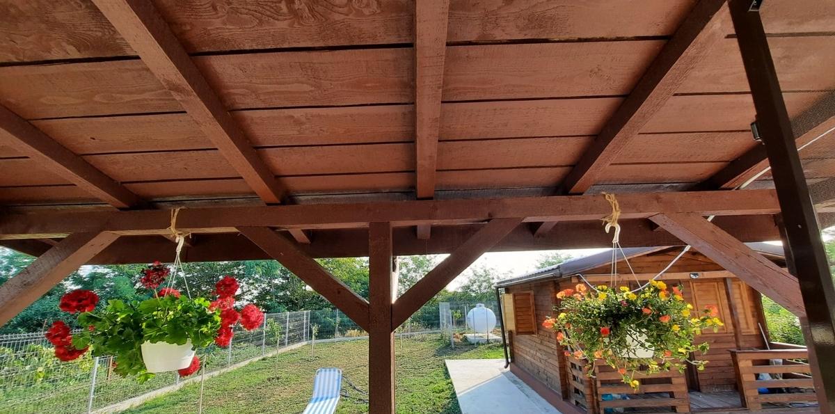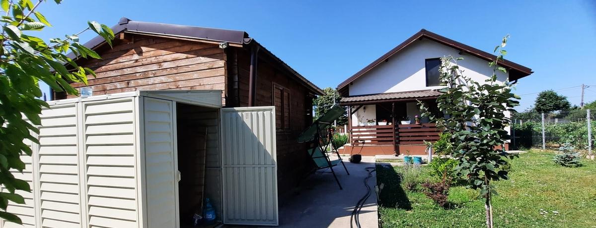 Langa cabana este o mica magazie pentru unelte Gasiti in ea mai toate uneltele cu care se poate lucra in gradina masina de tuns iarba furtun pentru udat In curte sunt 2 cismele Incalzirea se face cu centrala proprie prin sistem butangas Exista in curte o butelie de 1750 de litri Totul este facut cu autorizatii proiect In comuna exista si proiectul de gaze si au fost aduse deja tevile Casa se poate vinde mobilata utilata contra cost Mobila de bucatarie este Mobexpert este realizata pe comanda si ramane fara frigider daca se vinde nemobilata Tot mobilierul este Mobexpert nou frigider Beko capacitate mare aer conditionat Beko 2024 iulie cu functie de racire/ incalzire Curtea are pomi fructiferi care produc deja fructe smochini muri zmeuri brazi leandri magnolii alee cu trandafiri etc alei pavate cu posibilitate parcare in curte pentru 4 masini Terenul are 795 mp cu o deschidere de 15 m se afla pe Soseaua Principala Partea din fata a curtii are deschidere spre sosea iar partea din spate se deschide catre o mica padurice asigurand astfel intimitatea celor care locuiesc In zona sunt balti pentru pescuit si spatii de agrement Va astept la vizionare Va multumesc