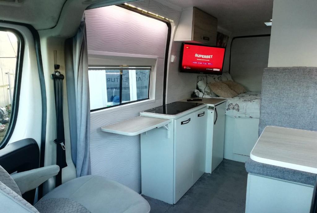 Campervan Citroen Jumper M1 fabricatie 2011 Euro 5 se conduce cu permis categoria B Este echipata cu tot ce este necesar pentru un off camping prelungit rezervor de apa curata 180 l bazin apa gri 60 l sub masina 2 panouri fotovoltaice monocristalin Victron Energy 2 x 180w controler solar mppt 30 Ah invertor Volt 800 W 220 v 2 acumulatori deep cycle 220 Ah prize 12V 220V si usb Incalzirea se realizeaza cu Webasto programator si telecomanda motorina 5 kw Aragaz 2 ochiuri si chiuveta Fiamma aprindere piezo si monitorizare flacara Frigider 98 l compresor Danfoss 12 v congelator mare silentios prevazut cu ventilator pentru racire Baia dimensiuni 1 / 0 80 utilata cu wc ecologic Thetford cu caseta de golire dus spatii depozitare trapa Fiamma 30x30 cm aerisire chiuveta este rabatabila Peretii interiori ai baii sunt din pvc imitatie de faianta Apa calda este realizata de un boiler instant pe gaz Televizor smart 60 cm Iluminarea cu spoturi led Izolatia este facuta cu vata bazaltica 10 cm folie aluminiu anticondens Podeaua are 5 cm grosime poliestiren extrudat tego si mocheta groasa cu lana 2 paturi unul este la locul de luat masa si se transforma usor prin plierea mesei rezultand un pat pentru copil iar celalalt pat este dispus transversal 1 95 / 1 50 pentru adulti Scaunele fata se rotesc 180 grade La exterior este prevazuta cu o marchiza impermeabila 3x3 m care se ataseaza de lateralul masinii Datorita dimensiunilor compacte 5980mm lungime se conduce foarte usor in traficul urban nu sunt probleme cu parcarea Inaltime la interior aprox 1 90 m S-au pastrat cele 3 locuri omologate 2 in fata unul in spate pe bancheta dubla cu centura Dotari aer conditionat geamuri electrice servodirectie abs scaune fata reglabile pe inaltime rotative 180 volan reglabil inchidere centralizata faruri reglabile electric etc Fara probleme tehnice motorul este in parametrii optimi Motor 2 2 diesel 131 CP Cutie manuala 6 1 viteze Km reali - 388334 Pretul este negociabil la fata locului