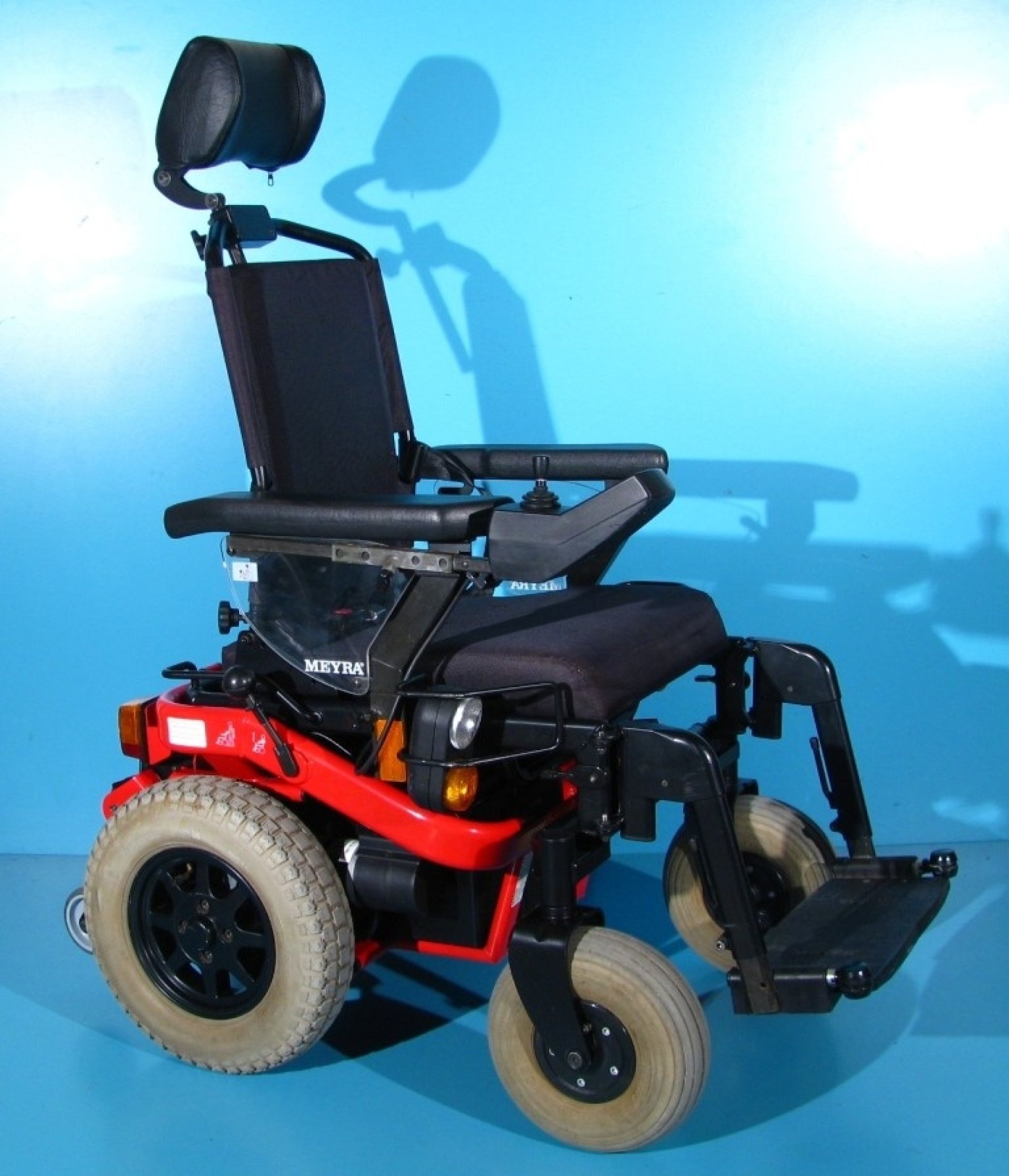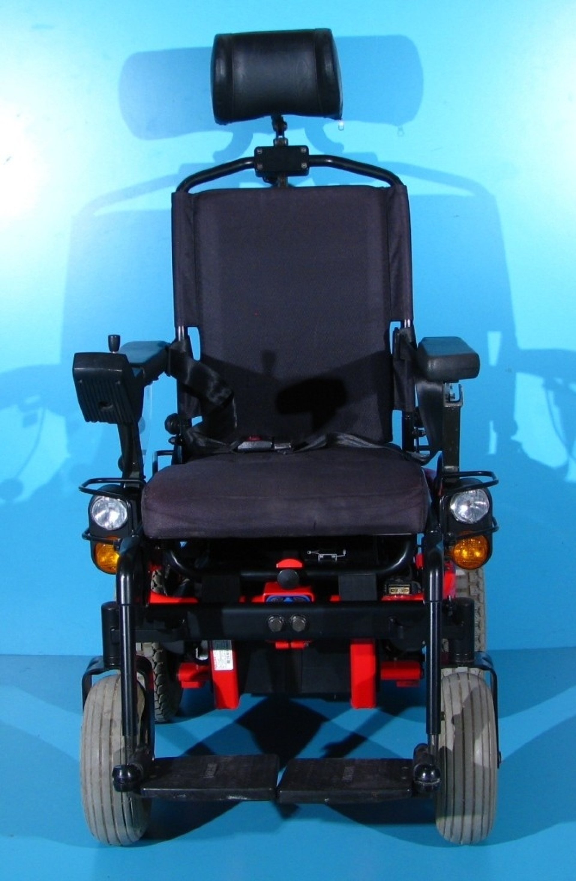Scaun cu rotile second hand cu comanda pe joystick destinat persoanelor cu handicap si persoanelor cu deficiente locomotorii.