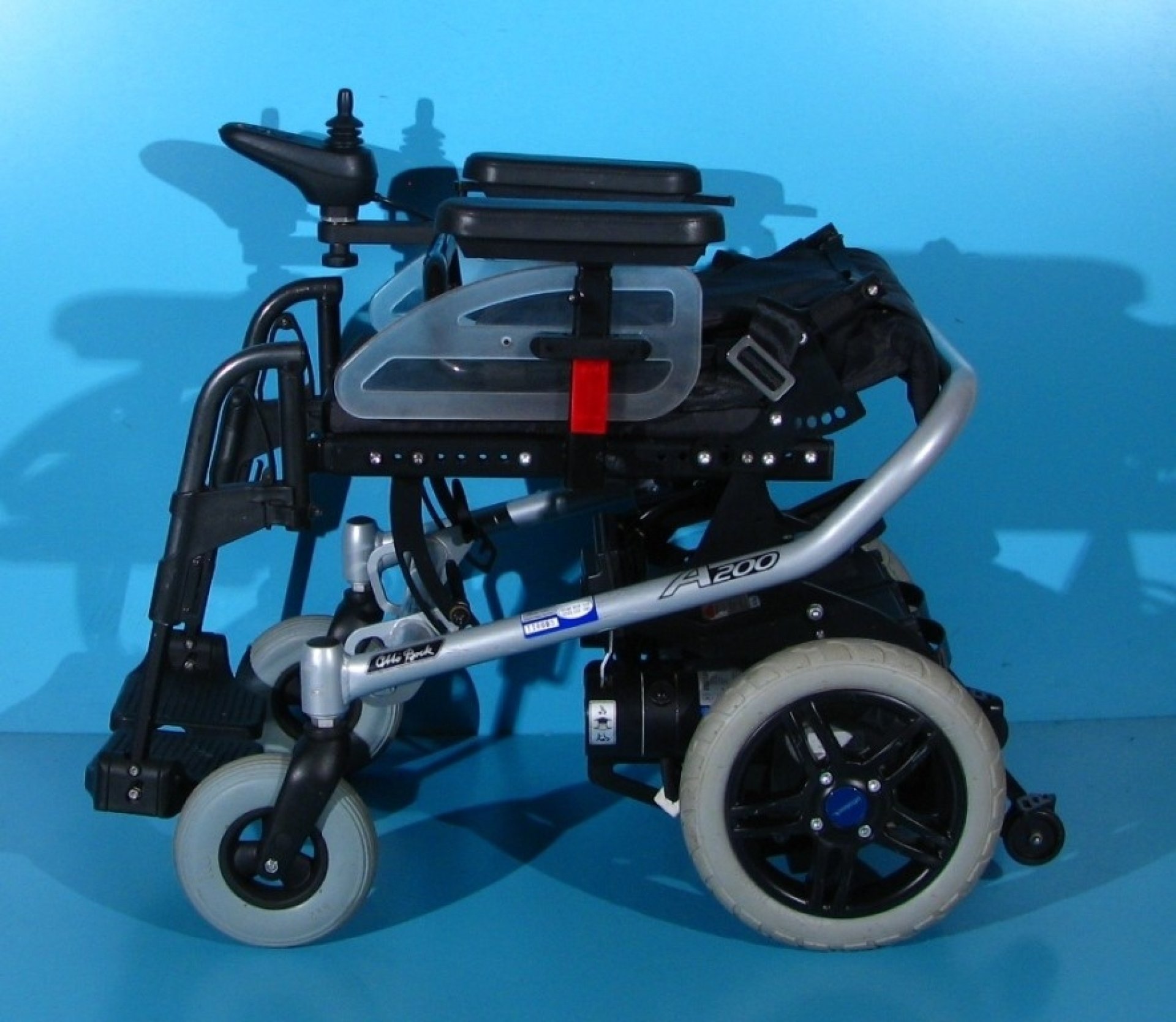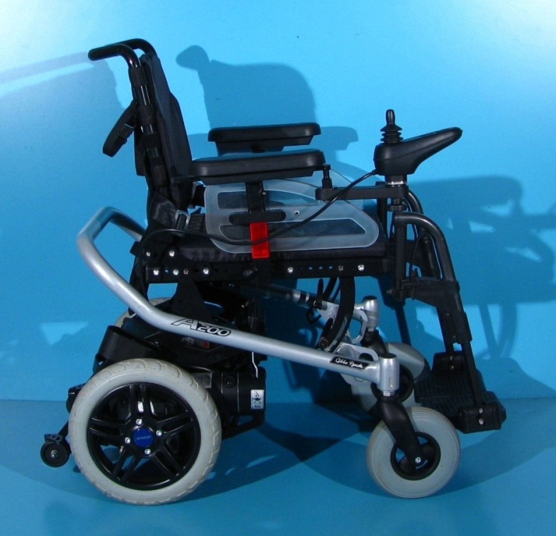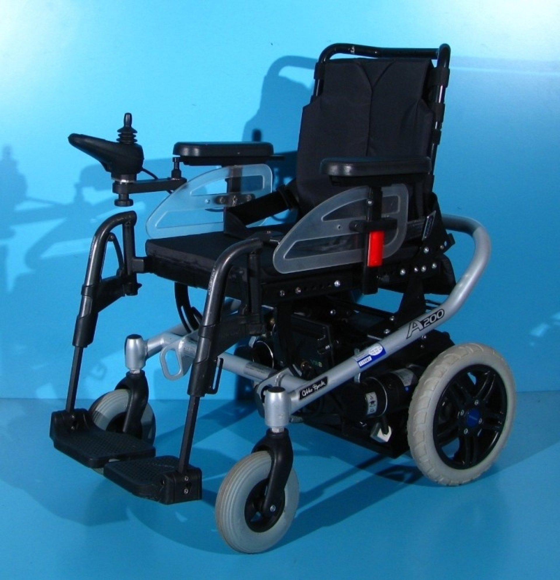 Scaun cu rotile electric, second hand, cu comandă pe joystick, destinat persoanelor cu handicap și celor cu deficiențe locomotorii. Caruciorul electric este proiectat pentru a oferi siguranță, stabilitate și confort, fiind dotat cu sistem de iluminare și semnalizare, ceea ce îi permite utilizarea pe drumurile publice.
