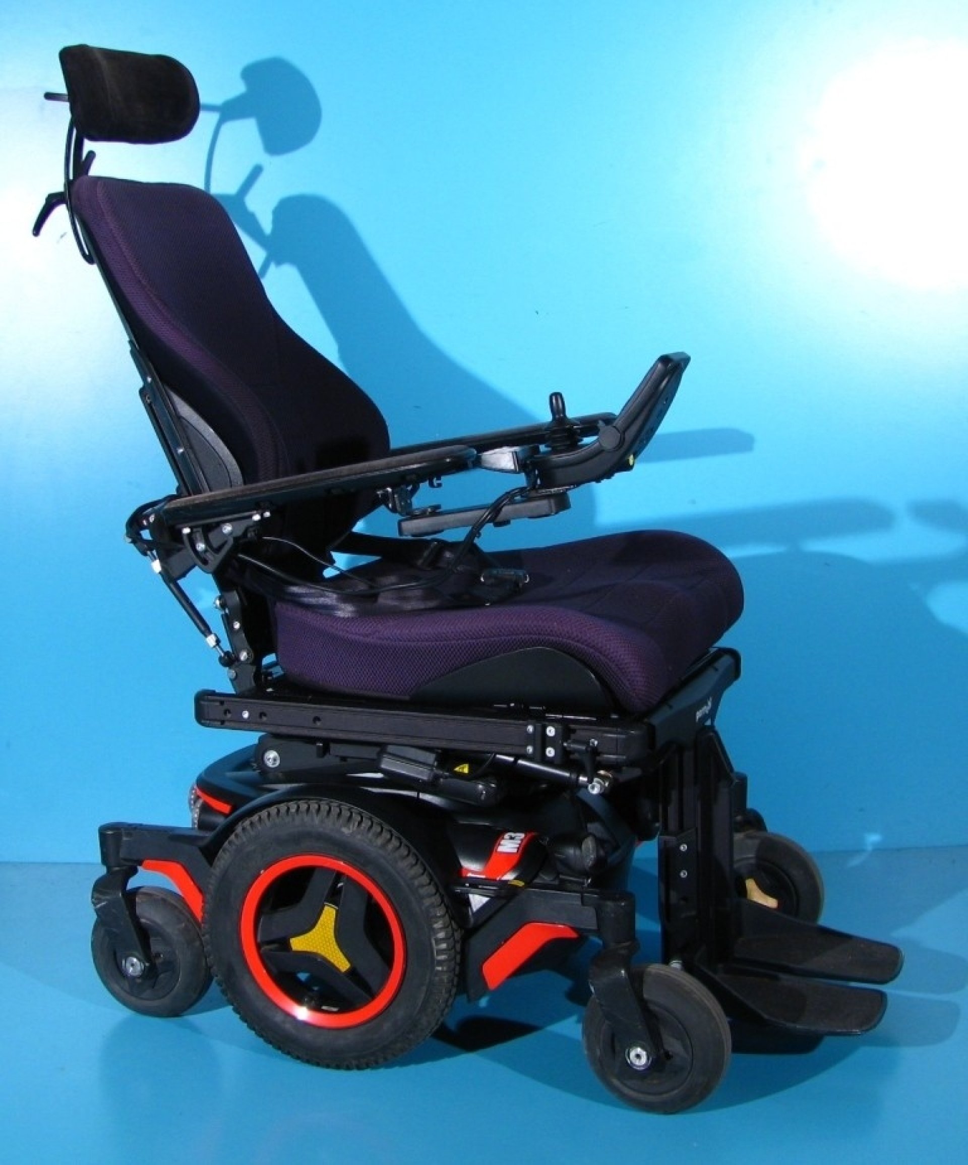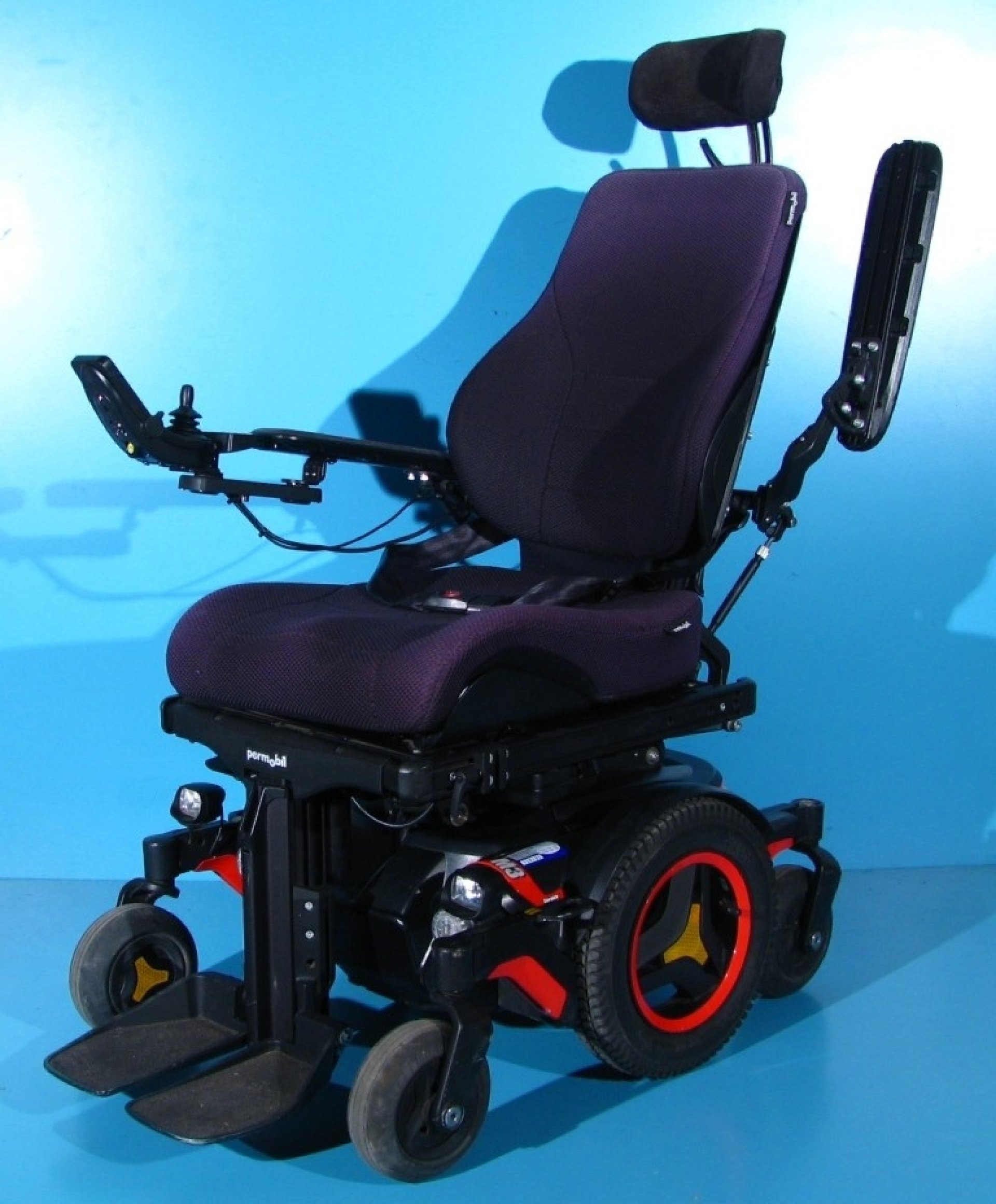 Scaun cu rotile electric, second hand, cu comandă pe joystick, destinat persoanelor cu handicap și celor cu deficiențe locomotorii. Caruciorul electric este proiectat pentru a oferi siguranță, stabilitate și confort, fiind dotat cu sistem de iluminare și semnalizare, ceea ce îi permite utilizarea pe drumurile publice.