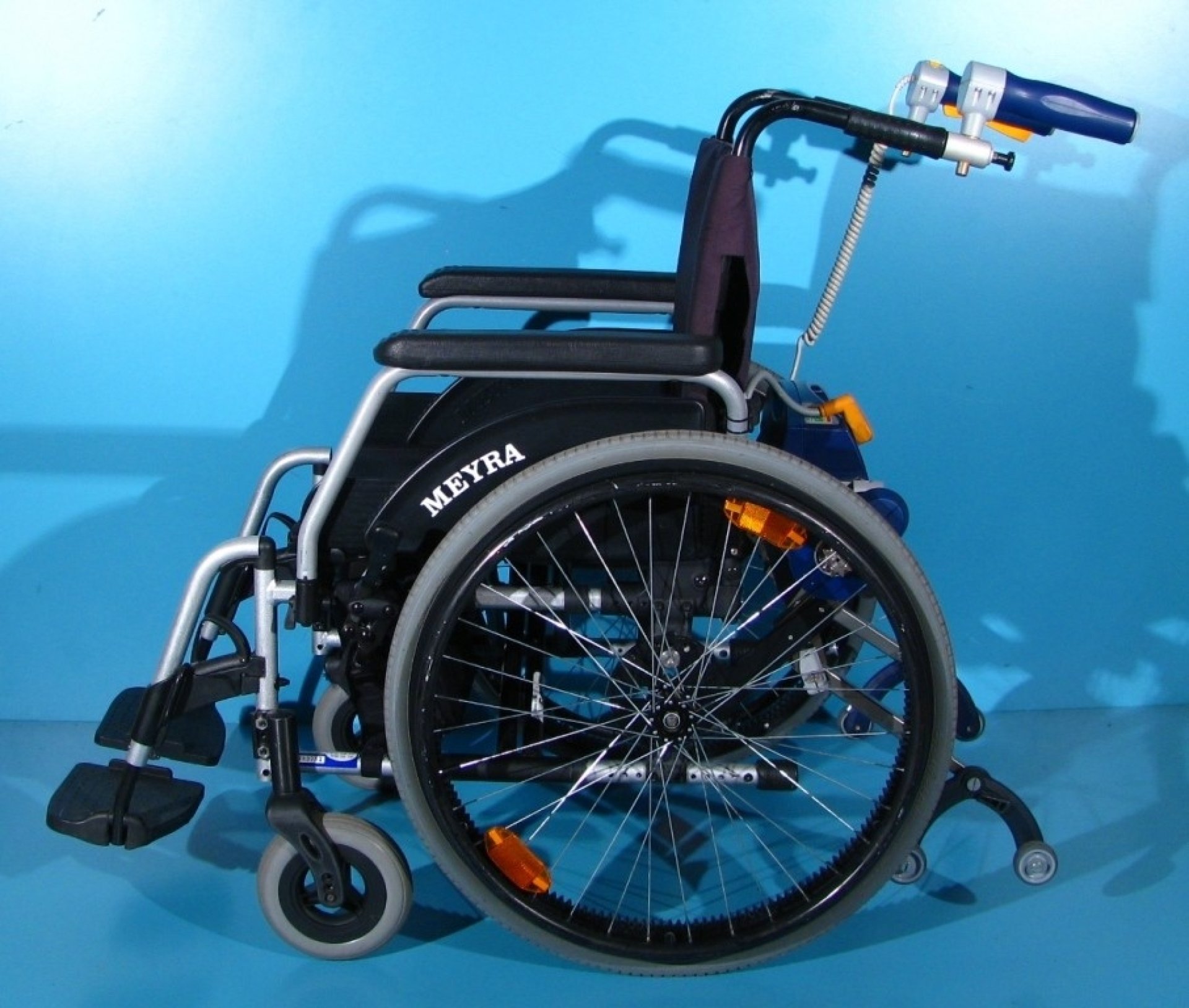 Meyra este denumirea scaunului cu rotile pe care este instalat acest dispozitiv.