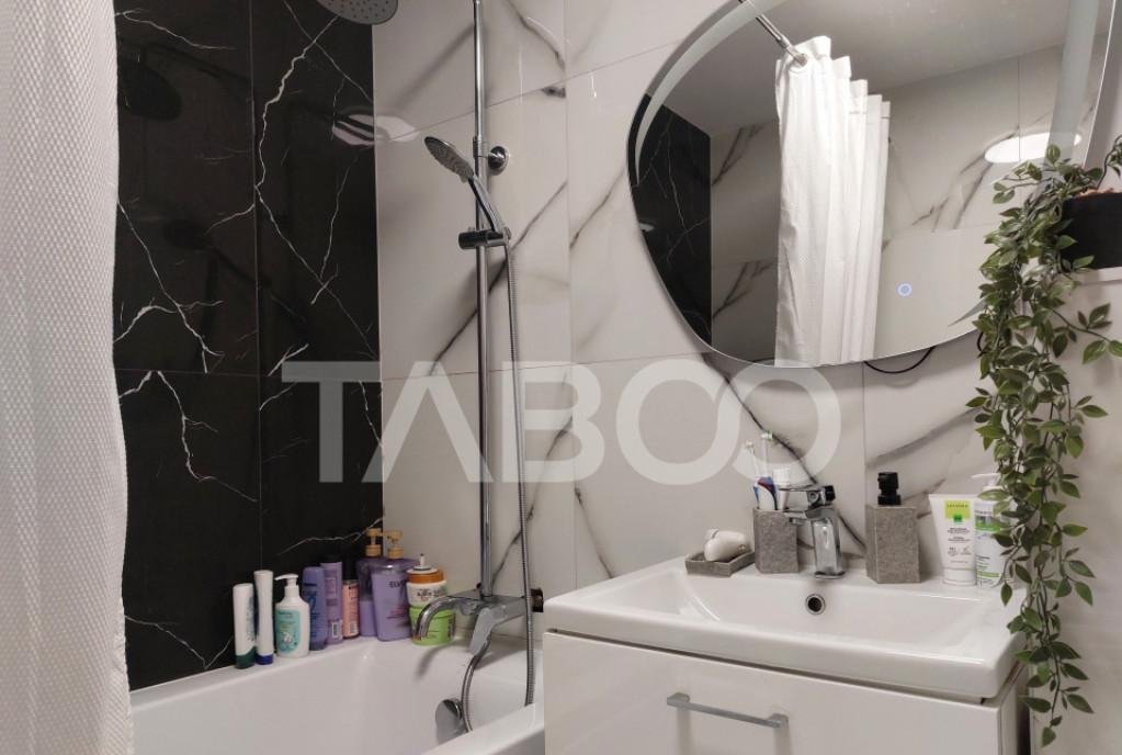 Apartament 3 camere de vanzare decomandat 62 mp zona Cisnadie Comision 0 pentru dumneavoastra nbsp Un apartament spatios in care te muti imediat stiuat la etajul 1 care ofera sptaiul optim pentru o familie cu copii Apartamentul are acces la uscatarie iar nbsp pentru depozitare avem o pivnita atribuita apartamentului la subsolul blocului nbsp Avantaje majore ale acestui apartament bull nbsp Pivnita - etajul 1 cu bucatarie separata bull nbsp Acces usor catre scoala gradinita si magazine nbsp bull nbsp Baie de serviciu nbsp TABOO Imobiliare propune un apartament de vanzare cu 3 camere decomandat situat in localitatea Cisnadie aflat la etajul 1 intr -un imobil tip bloc cu regim de inaltime pe demisol Parter 4 Etaje anul constructiei 1980 structura caramida Suprafata utila de 62 mp balcon de 7 mp Apartamentul este structurat astfel bull Hol de compartimentare bull Bucatarie cu camara bull Baie cu cada bull Living cu balco...