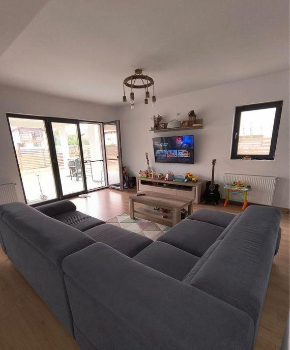 Va prezentam o casa individuala moderna situata intr-o zona linistita perfecta pentru cei care isi doresc confort eficienta energetica si intimitate Casa se afla la 2 minute de mers pe jos pana la STV Detalii esentiale ale casei 3 camere 2 dormitoare living 2 bai Bucatarie moderna Dormitor matrimonial cu dressing si baie proprie Terasa exterioara 80 mp utili 375 mp teren Dotari si beneficii Icirc ncalzire in pardoseala Geamuri termopan tripan Conectata la curent pompa de caldura Fosa ecologica Apa prin put forat Panouri solare de 6 kW pentru eficienta energetica si costuri reduse la utilitati 135 000 euro ndash mobilata doar bucataria Pentru mai multe detalii nu ezitati sa ma contactati Programari pentru vizionari si in weekend COMISION 0 Ioana Badiu 0787397396