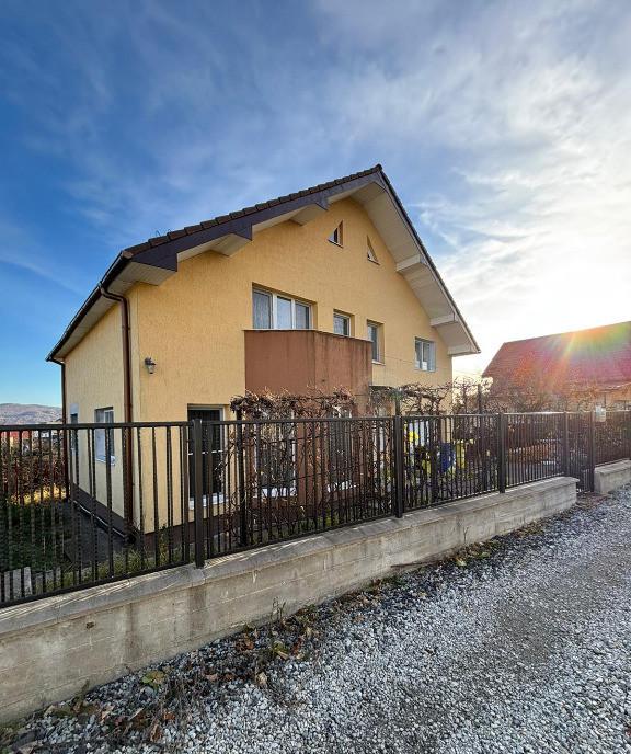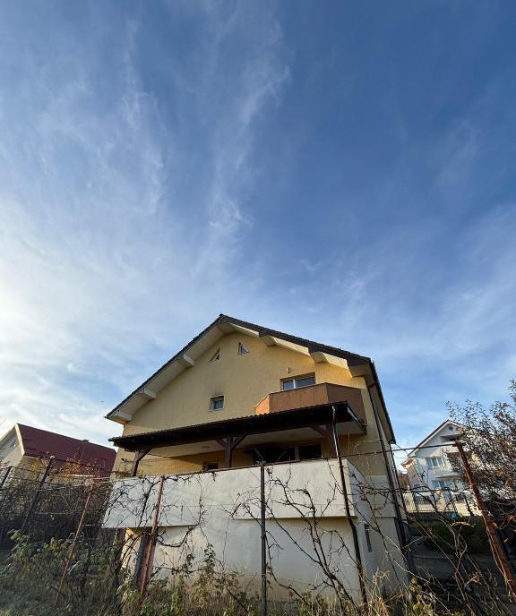 Vand casa P E pe str Subcetate pe o straduta ferita cu cota parte din drum acces controlat trafic redus foarte insorita cu terasa larga si panorama frumoasa peste oras terenul de 730 mp este amenajat cu vita-de-vie si pomi fructiferi meri peri pruni plus o platforma alaturata casei pentru parcarea a doua masini pe langa garajul integrat Constructia din 2009 este din caramida executata corect si rezistent dotata cu termopane si centrala pe gaz Parterul include living generos si luminos bucatarie cu acces facil si baie mare cu dus la etaj se afla trei dormitoare aerisite si o baie spatioasa cu cada Plan functional loc ideal pentru o familie care cauta calm lumina si priveliste straduta ingusta filtreaza natural traficul si sporeste siguranta