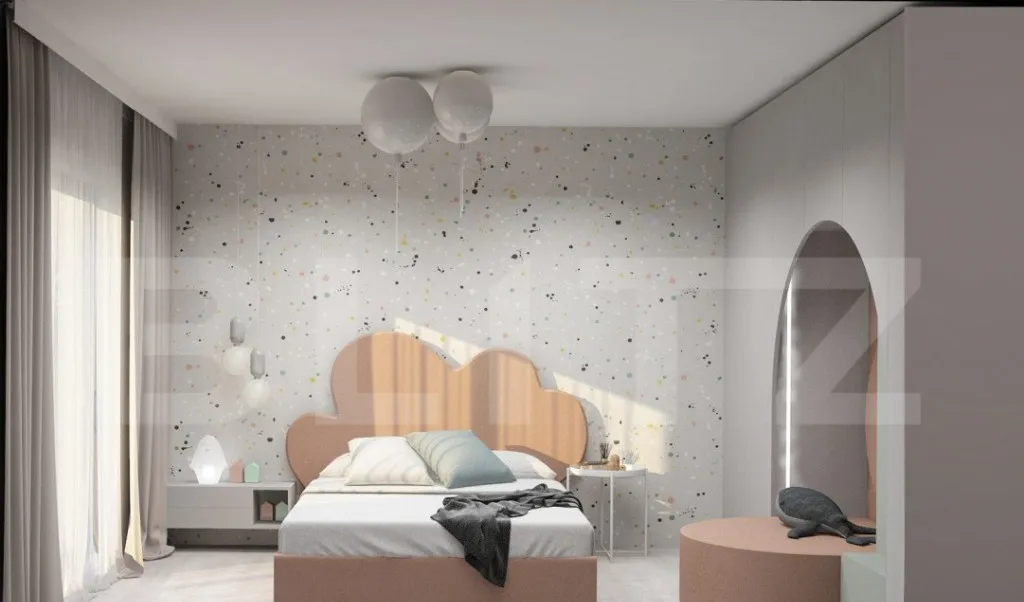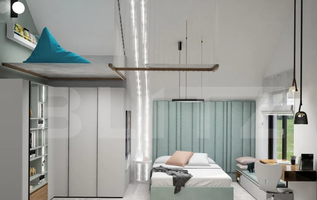 -3 dormitore,camera tehnica, 2 bai si 2 terase mari. Dormitorul matrimonial cu baie proprie si iesire pe terasa, dormitorul copilului cu ancore pt joaca deasupra in tavanul inalt cu loc secret, ascunzis, si dormitorul celalalt cu inca o iesire pe alta terasa, avand totodata 2 bai care le deserveste, cu vana free standing, si usi cu inaltimea de 2, 5 m, aceasta casa va va uimi!
